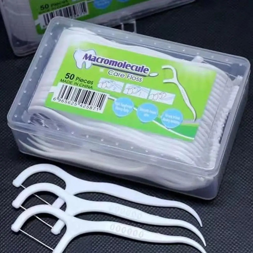 50pcs + Box Dental Floss Benang Pembersih Kotoran Sela Gigi Flosser Picks Teeth Toothpicks Stick Tooth Clean Oral Care