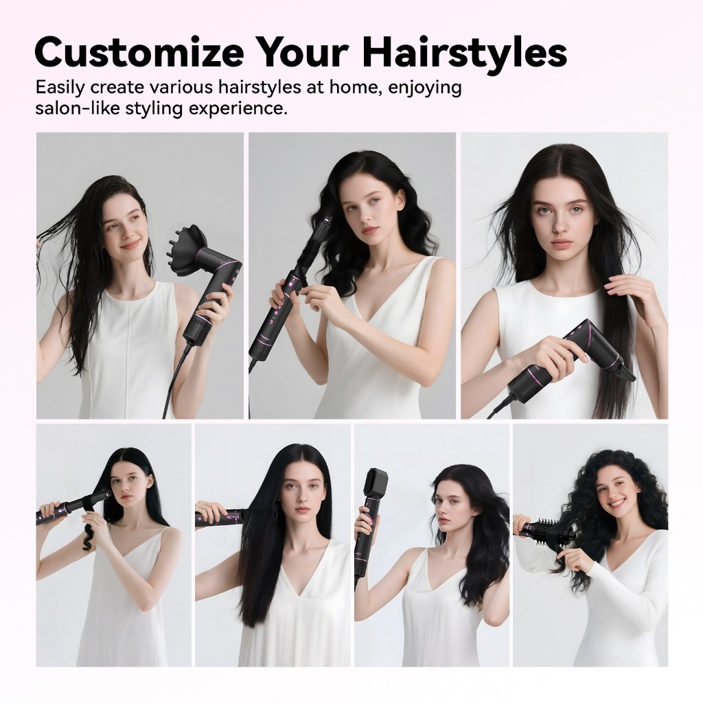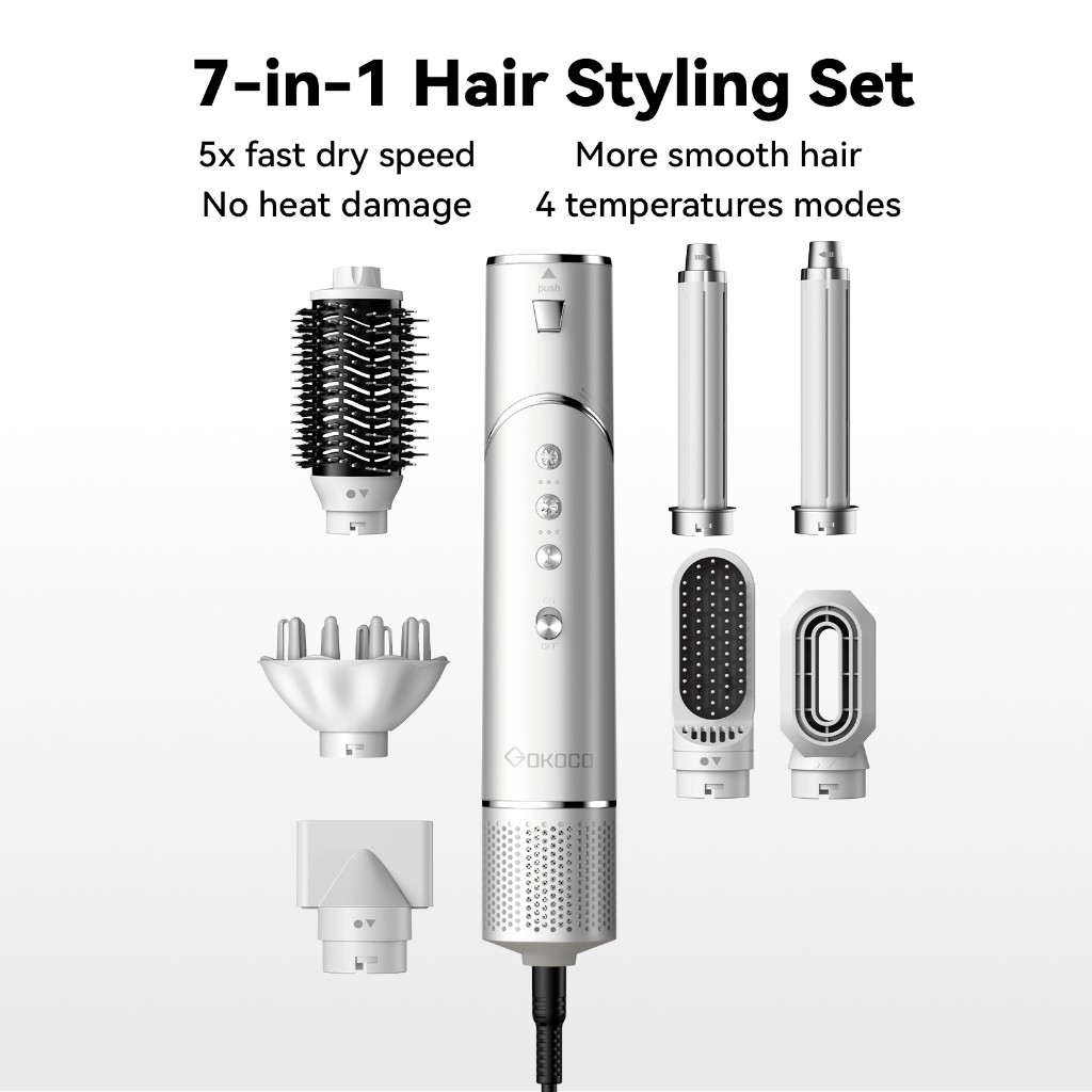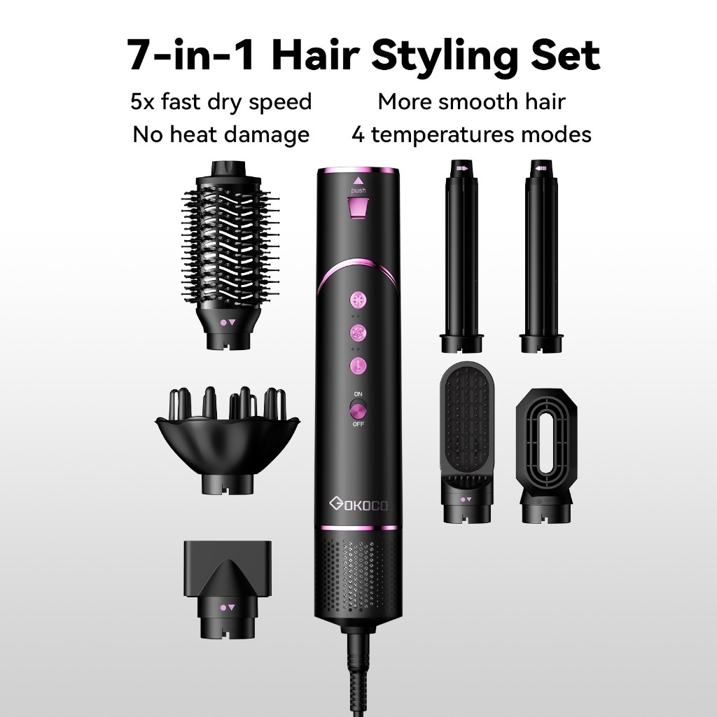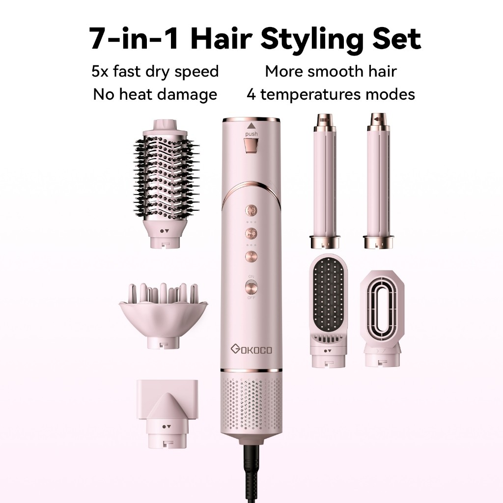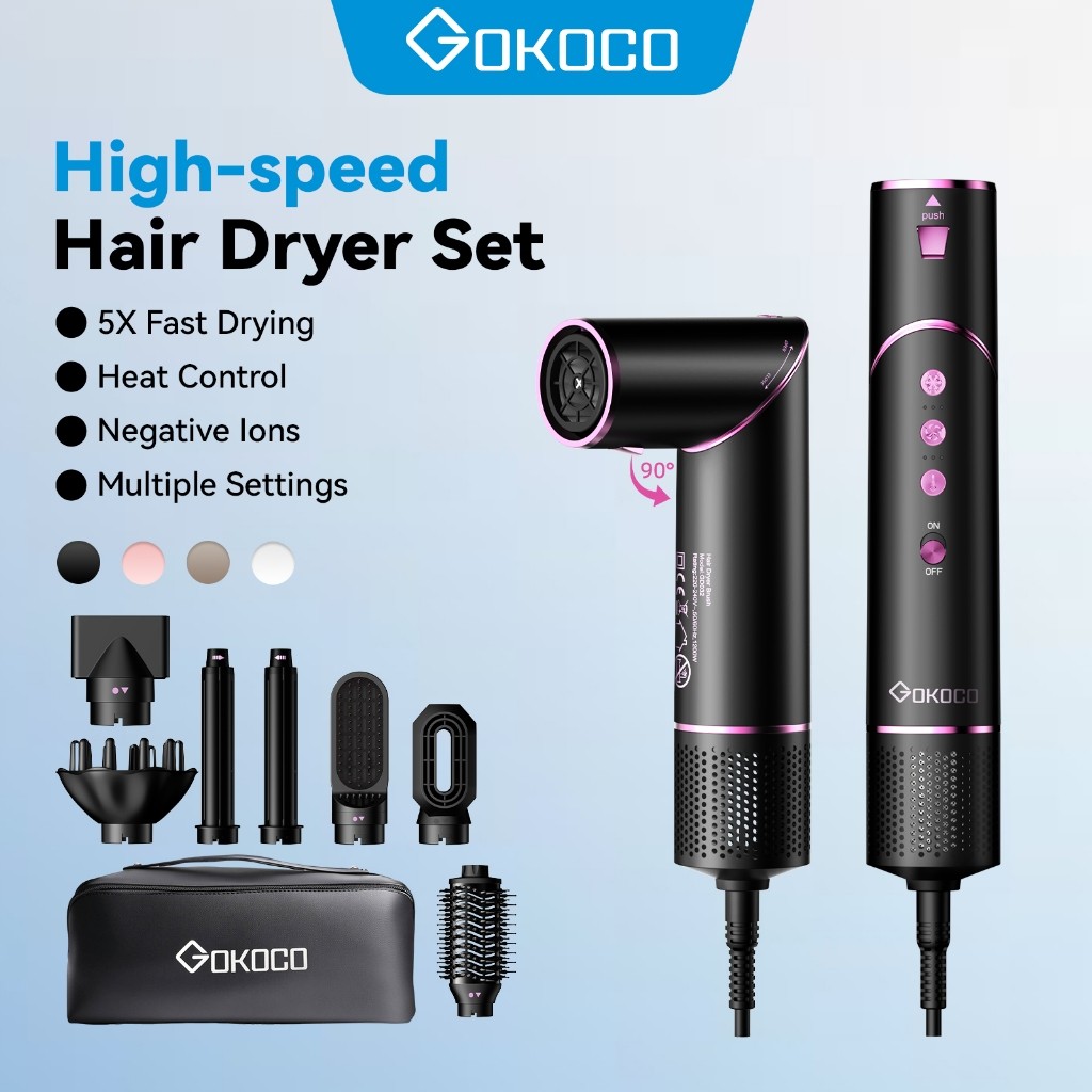 GOKOCO Ultra-Fast Drying Experience Create Smoother, Shinier Hair 7PCS All-in-One Styling Kit High Speed Hair Dryer Set