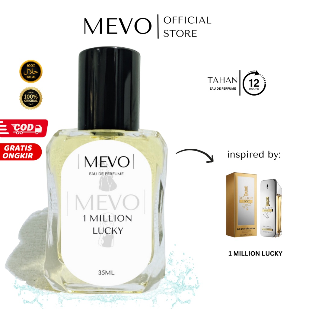 MEVO - Parfum Pria Tahan Lama Aroma Elegant Karismatik Soft Honey Inspired By 1 Million Lucky | Minyak Wangi Parfume Farfum Perfume Cowok Cewek Murah Original