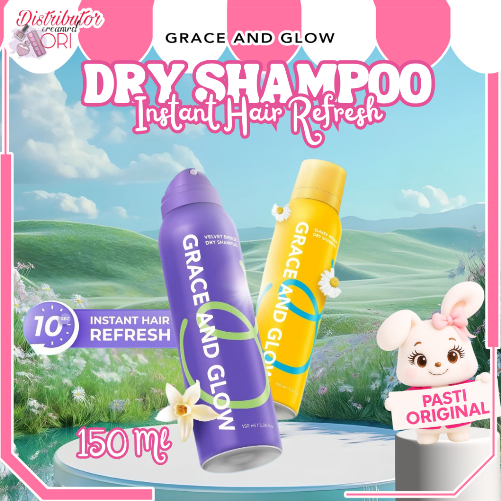 Grace and Glow Dry Shampoo Instant Hair Refresh Daisy & Velvet Breeze | Shampoo Kering Tanpa Bilas Hair Spray | Distributor Cream Ori