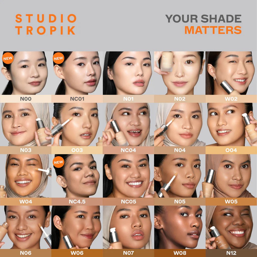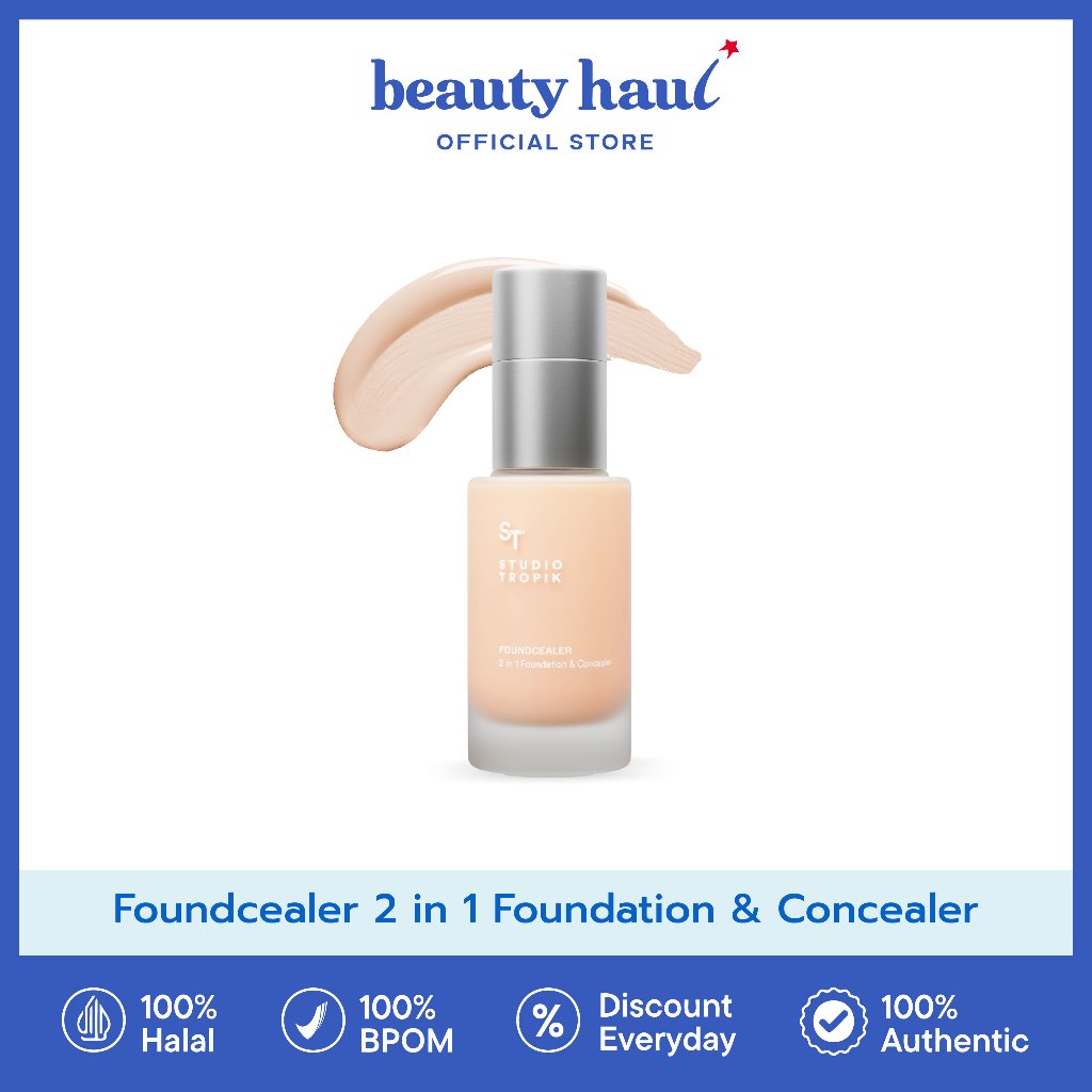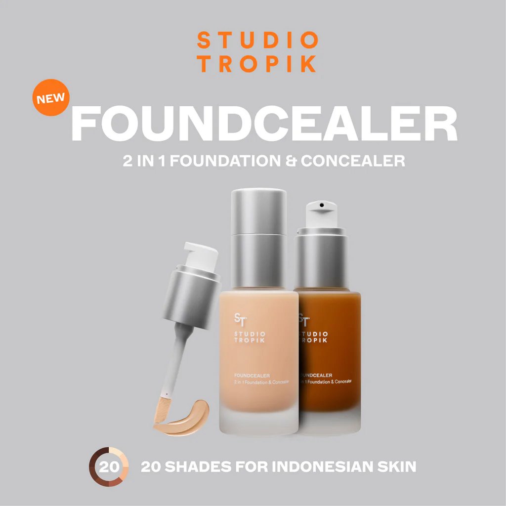 Studio Tropik Foundcealer 2 in 1 Foundation & Concealer - Studio Tropik Fpundation & Concealer, Foundation Concealer 2 in 1, Base Makeup Ringan, Buildable, dan Tahan Lama