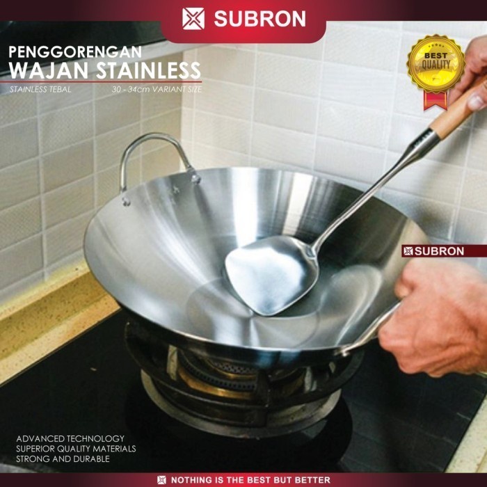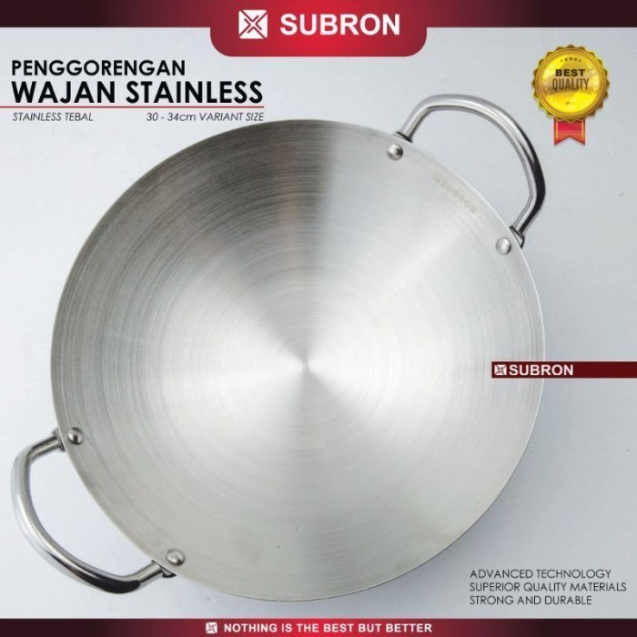 Subron Wajan Stainless 30 32 34 36 38 40 43 47 cm Kuali penggorengan Frywok