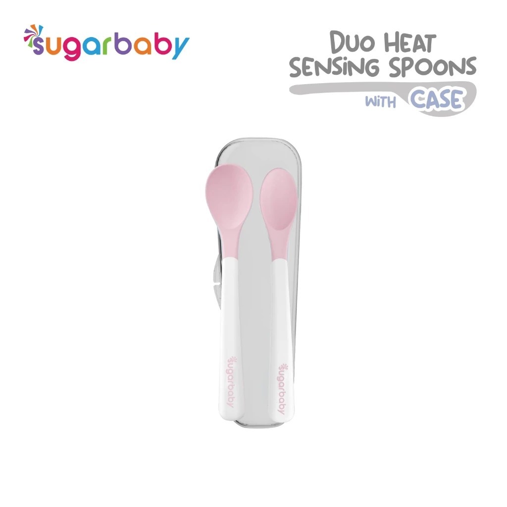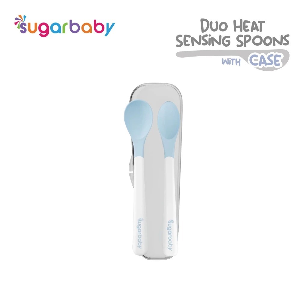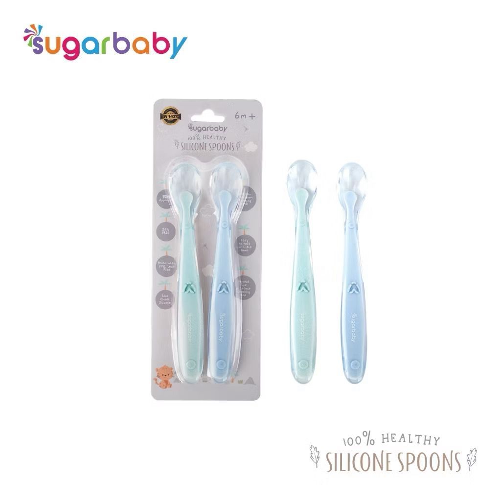 Sugar Baby Heat Sensing Spoon / Peralatan Makan Bayi / Alat Makan Bayi Healthy Silicone Spoons 2 Set Blue Pink Sendok Makan Bayi SugarBaby