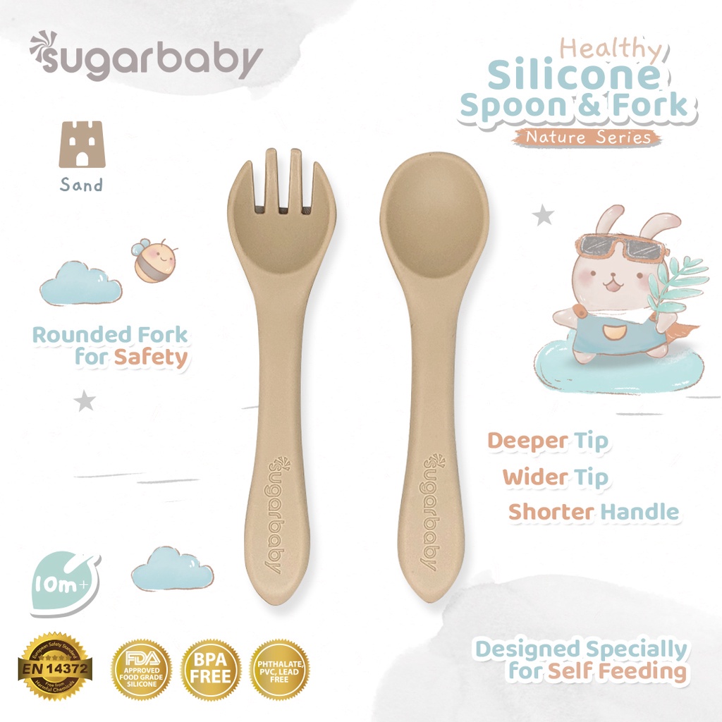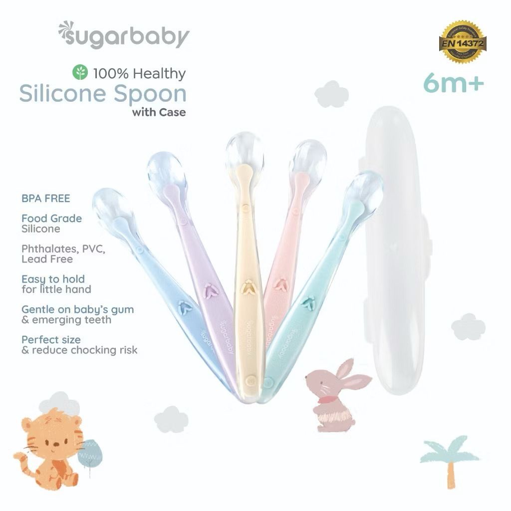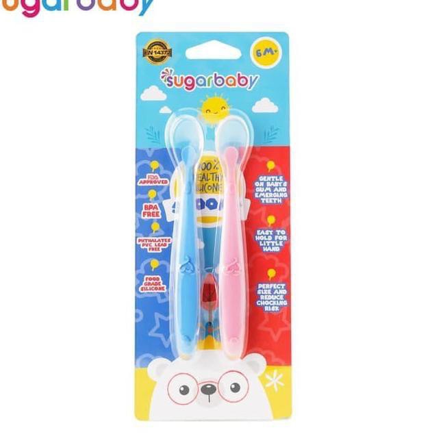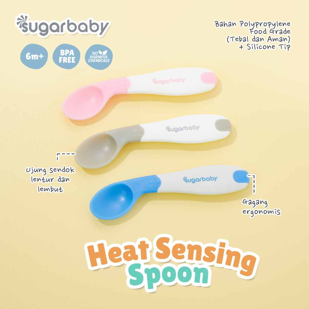 Sugar Baby Heat Sensing Spoon / Peralatan Makan Bayi / Alat Makan Bayi Healthy Silicone Spoons 2 Set Blue Pink Sendok Makan Bayi SugarBaby