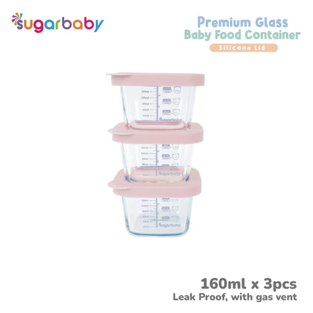 SugarBaby Premium Glass Jar Baby Food Container 3 pcs BPA FREE / Peralatan Makan Bayi MPASI / Sugar Baby Wadah Mangkok Bayi Silicone