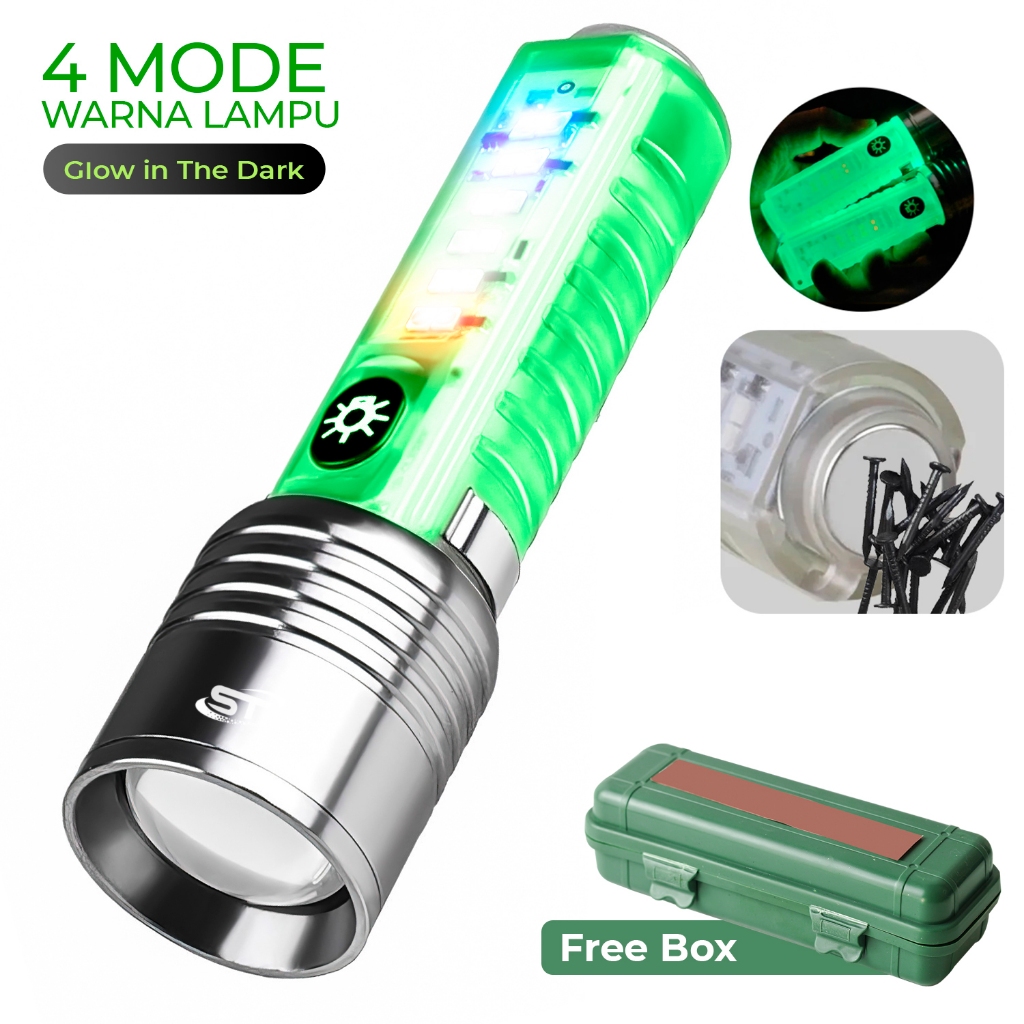 Suksestech Senter Maghnet Zoom in out Cas 8 Mode Warna 30W Waterproof Flashlight 520A