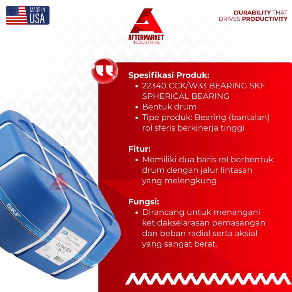 Suku Cadang Sparepart 22340 CCK/W33 SKF Spherical Bearing Bantalan 2 Baris Rol Sferis Bentuk Drum