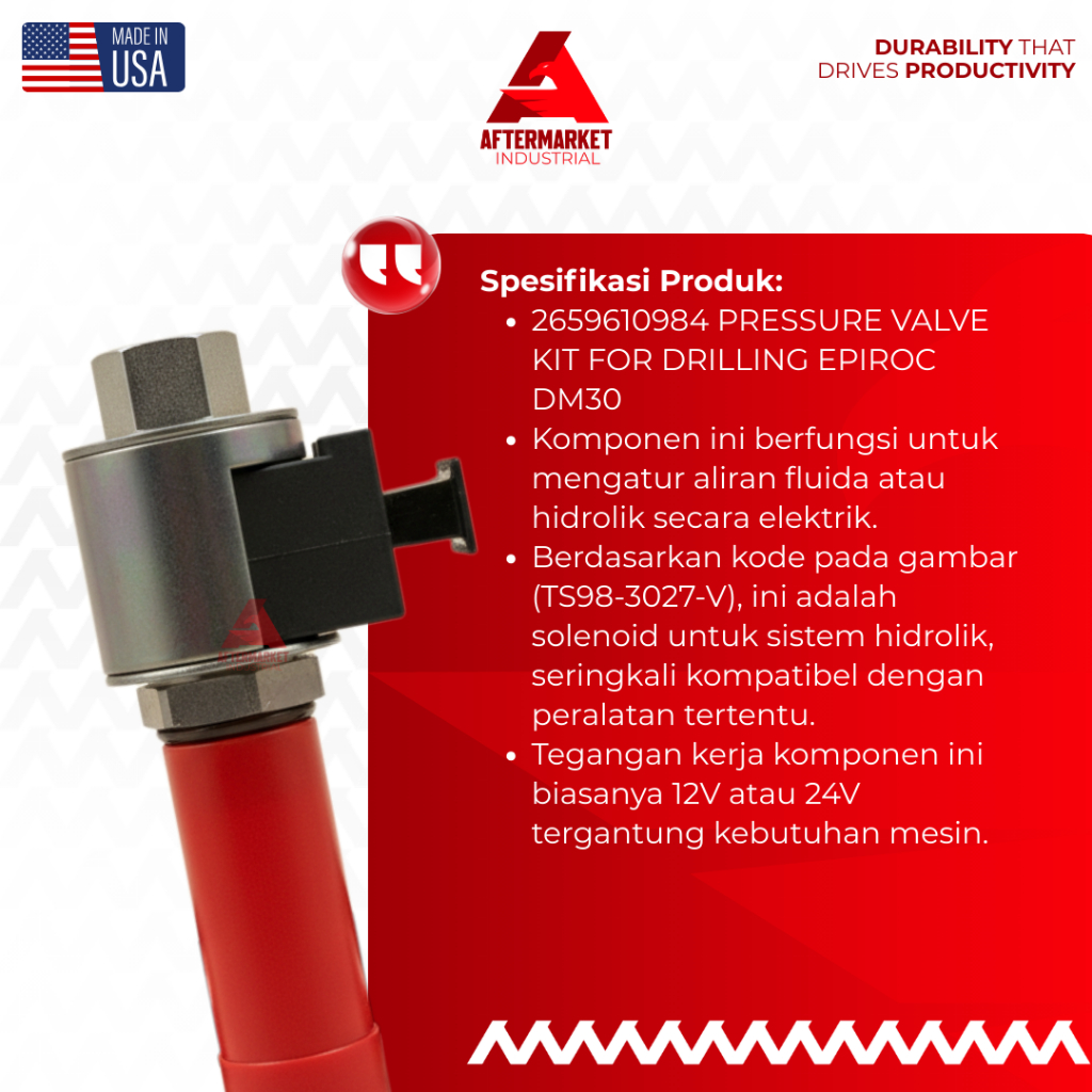Suku Cadang Sparepart 2659610984 Pressure Valve Kit Epiroc Katup Solenoid Alat Berat Mesin Industri