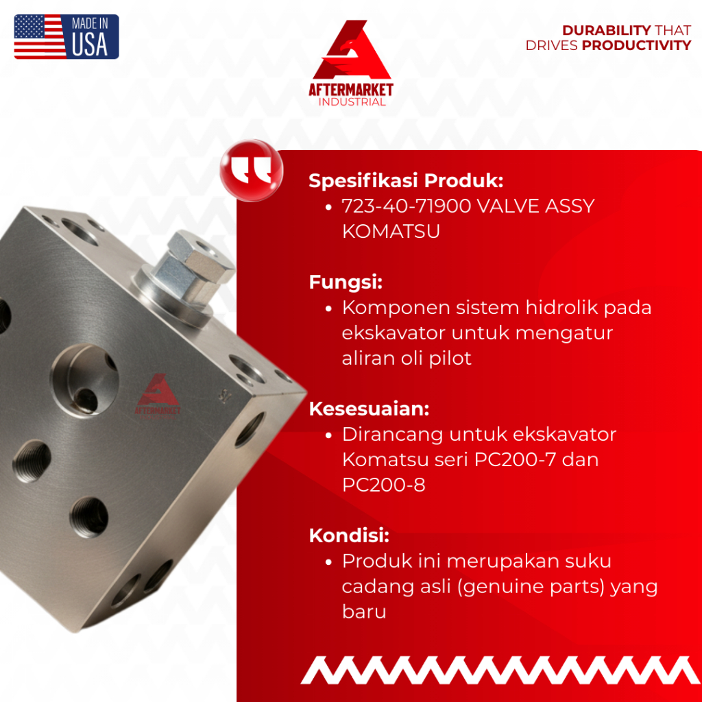 Suku Cadang Sparepart 723-40-71900 Valve Assy Komatsu Ekskavator Unit Katup Sistem Hidrolik
