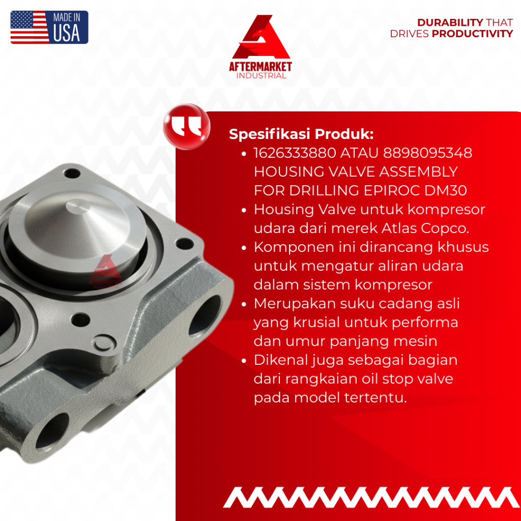 Suku Cadang Sparepart Housing Valve Assembly 1626333880 / 8898095348 Epiroc Kompresor Udara Performa Mesin