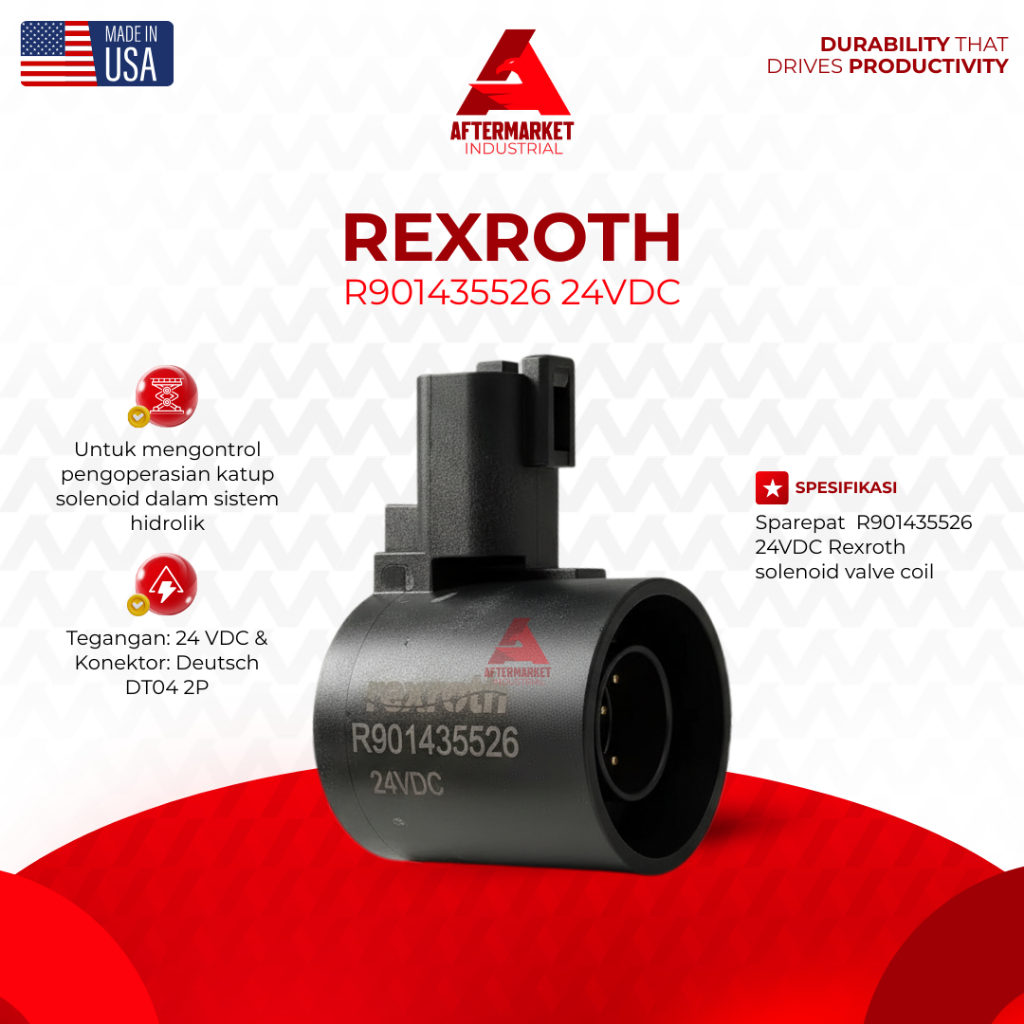 Suku Cadang Sparepart R901435526 24VDC Rexroth Kumparan Katup Selenoid Valve Coil