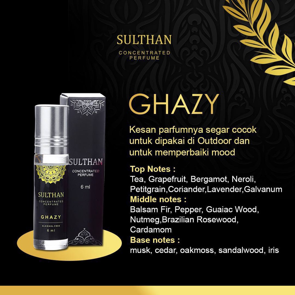 Sulthan Concentrated Parfume 100% bibit Murni Non Alkohol Parfum Sulthan Araby Classy Ghazy