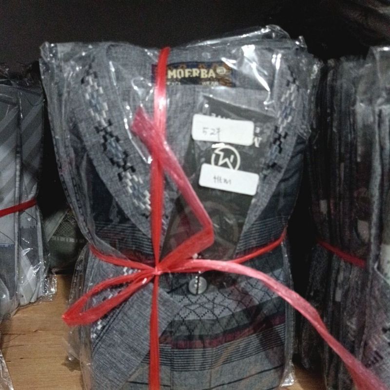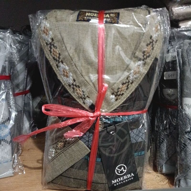 SumberRejekiJeans (BONUS DUS) Baju Koko Pria Muslim MOERBA Lengan Pendek 19D243527 SKTSLR-PDK.WR527 Songket Warna Abu Katun Halus Dingin