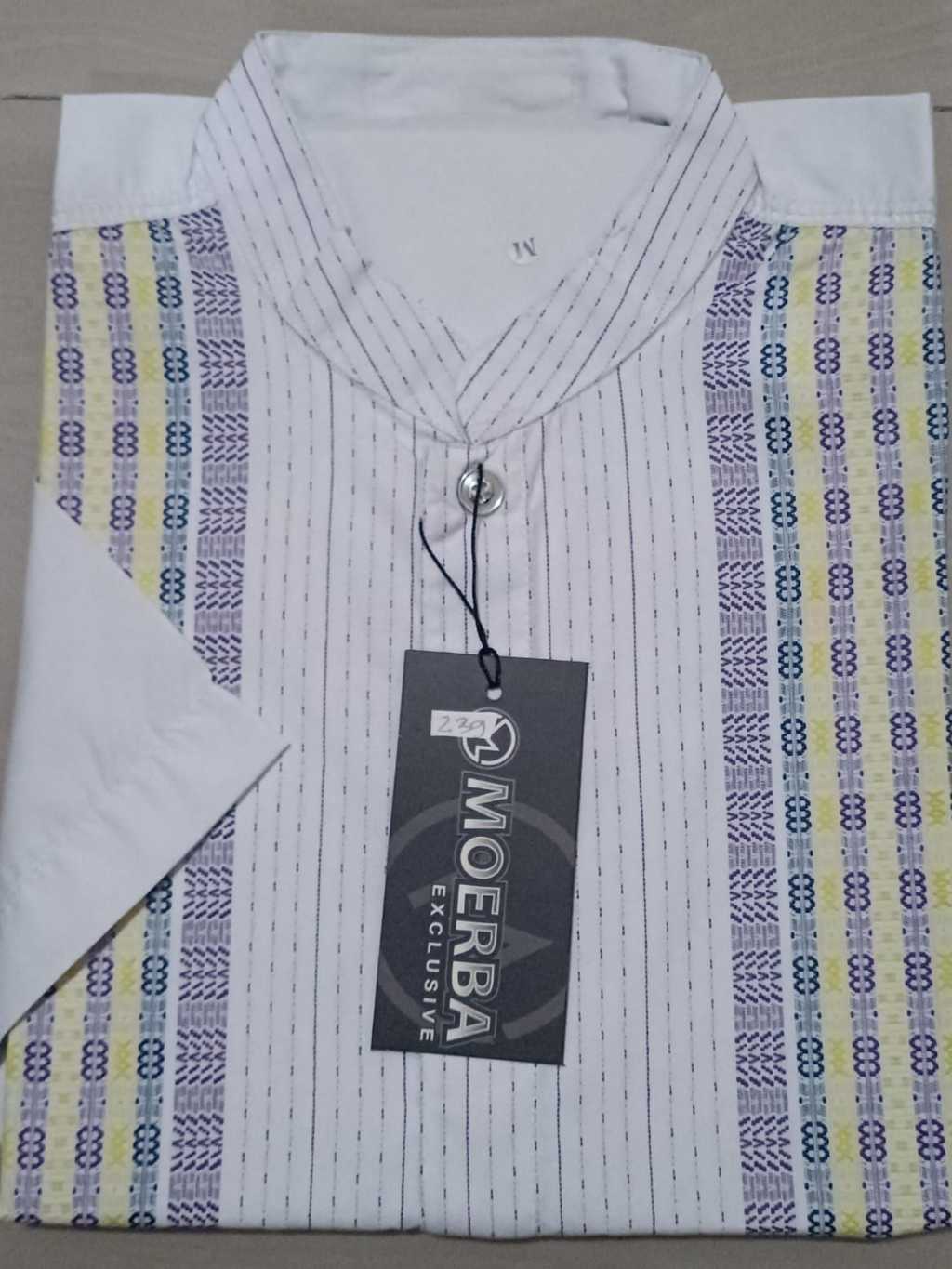 SumberRejekiJeans - (BONUS DUS) MOERBA Baju Koko Pria Katun SONGKET Lengan Pendek Putih KOMBINASI 18D243239 (18) Cocok Untuk Hadiah THR Lebaran Umroh Haji Kado Bapak Kakek Pesantren Idul Fitri