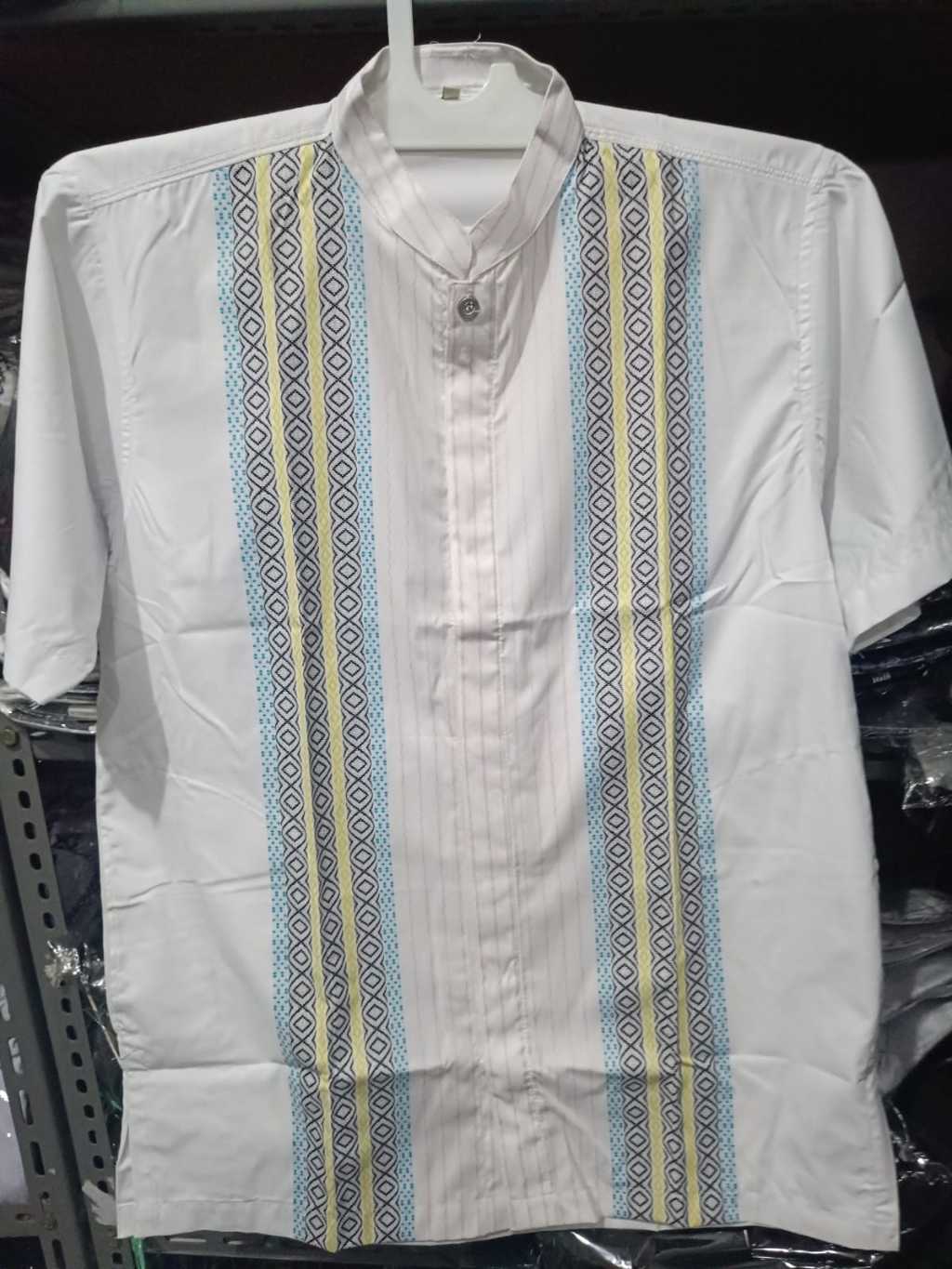 SumberRejekiJeans - (BONUS DUS) MOERBA Baju Koko Pria Katun SONGKET Lengan Pendek Putih KOMBINASI 19D243242 (12) Cocok Untuk Hadiah THR Lebaran Umroh Haji Kado Bapak Kakek Pesantren Idul Fitri Kemeja Tangan Pendek | Baju Koko Pria