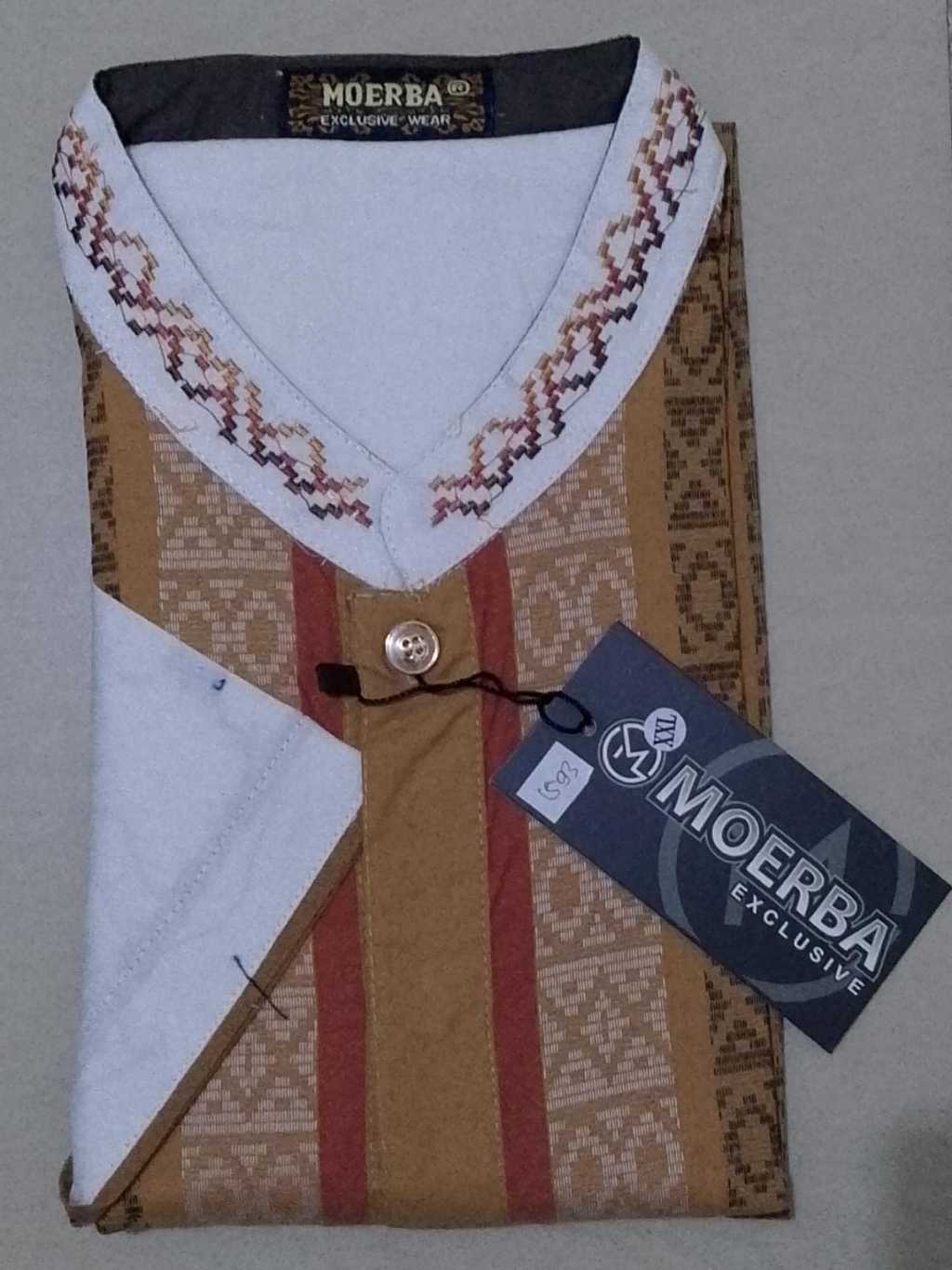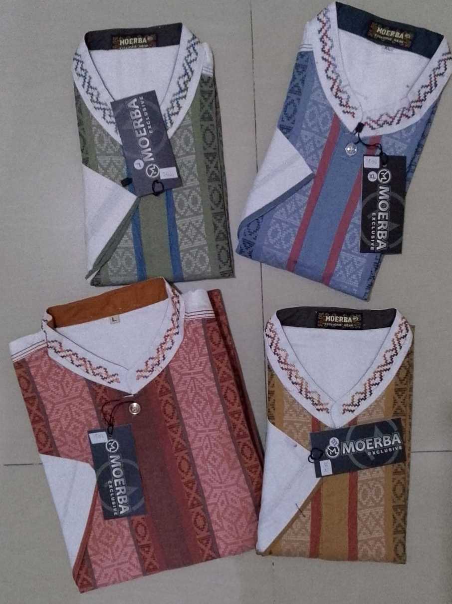 SumberRejekiJeans - (BONUS DUS) MOERBA Baju Koko Pria Katun SONGKET Lengan Pendek Putih KOMBINASI SKTAP-PDK.PTH1593Cocok Untuk Hadiah THR Lebaran Umroh Haji Kado Bapak Kakek Pesantren Idul Fitri