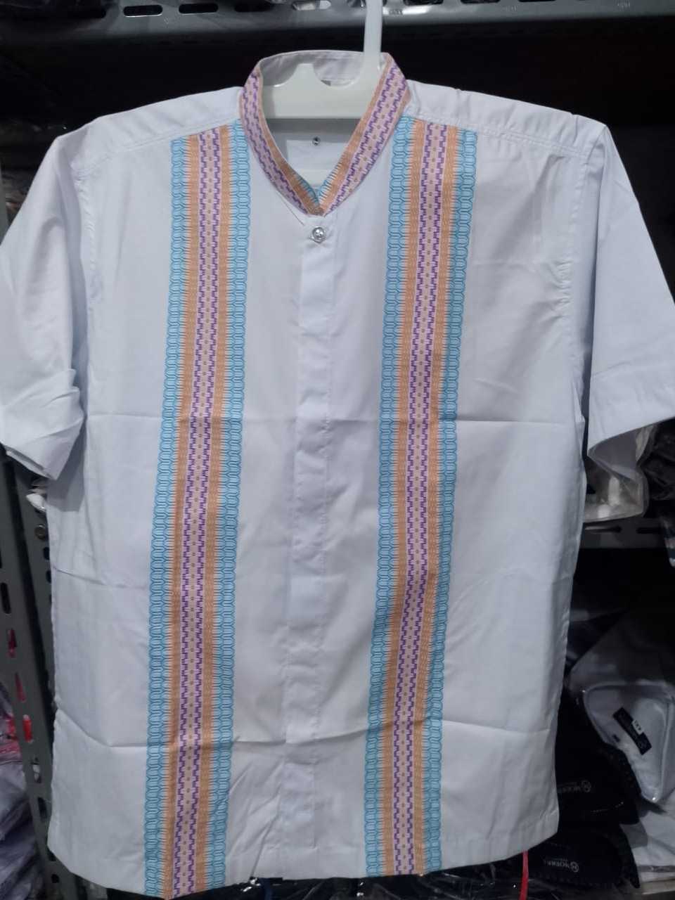 SumberRejekiJeans (BONUS DUS) MOERBA Baju Koko Pria Lengan Pendek Terbaru 2025 Bahan Songket Impor Putih Warna Kombinasi Halus Dingin 18D243143 (11) SKTAP-PDK.PTH143