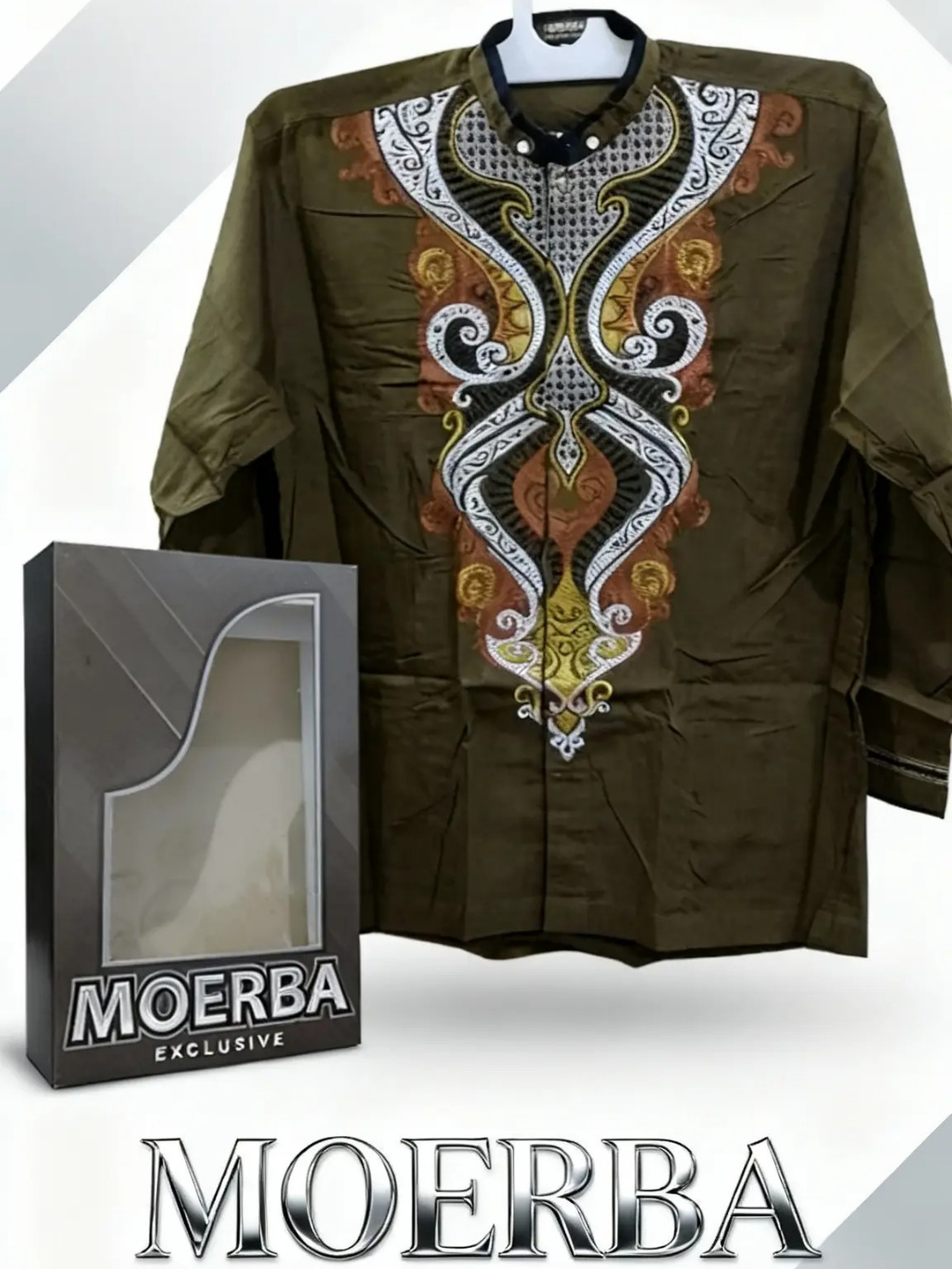 SumberRejekiJeans (BONUS DUS) MOERBA Baju Koko Pria Terbaru Lengan Panjang Bahan Filafil Warna Olive 04 L XL XXL Pakaian Muslim