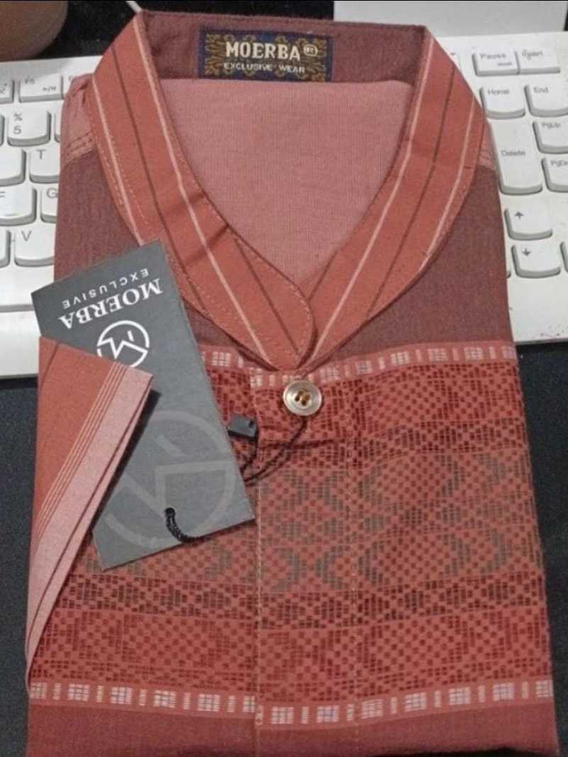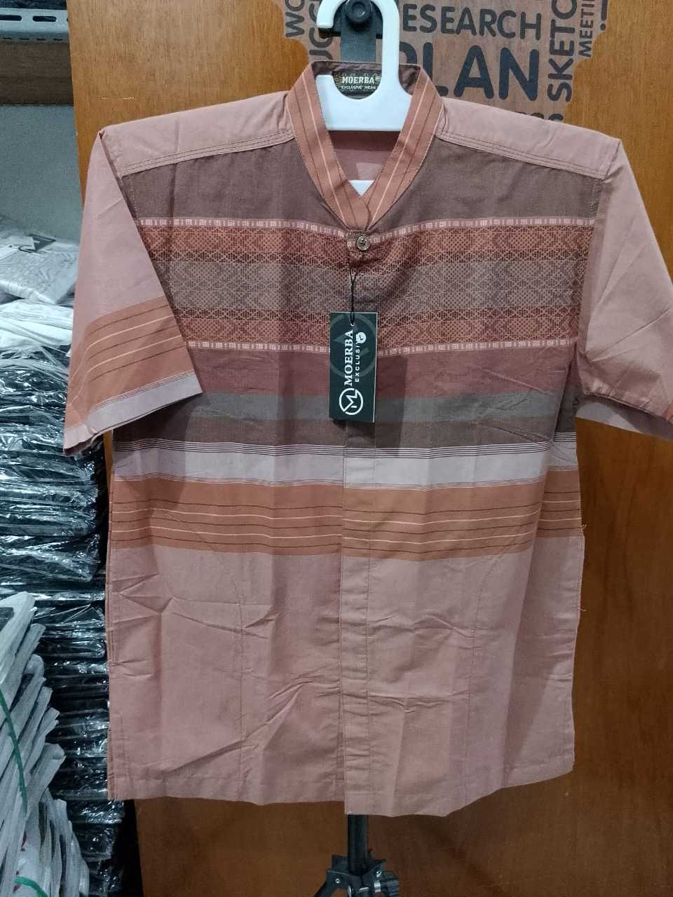 SumberRejekiJeans MOERBA (BONUS DUS) Baju Koko Pria Terbaru Lengan Pendek Songket Bata Orange 455 Cocok Untuk Hadiah THR Lebaran Hampers Gift Acara Hajatan Syukuran Haji Umroh Bapak Kakek