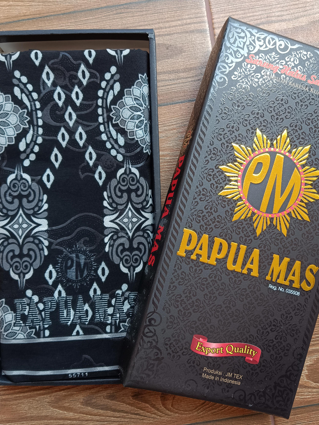 SumberRejekiJeans - SARUNG MUSLIM PAPUA MAS SUTRA HALUS BONUS DUS PM 55711 HITAM PRIA DEWASA JUMBO BUSANA SHALAT