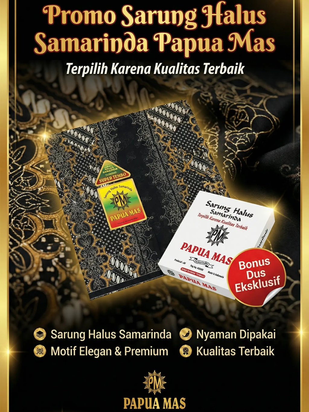 SumberRejekiJeans - SARUNG MUSLIM PAPUA MAS SUTRA HALUS BONUS DUS PRIA DEWASA JUMBO BUSANA SHALAT 55732