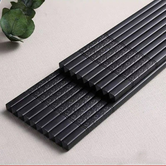 Sumpit Alloy Warna Hitam Dengan Ukiran Bunga (27cm) (1 Pasang)