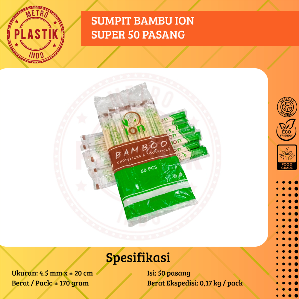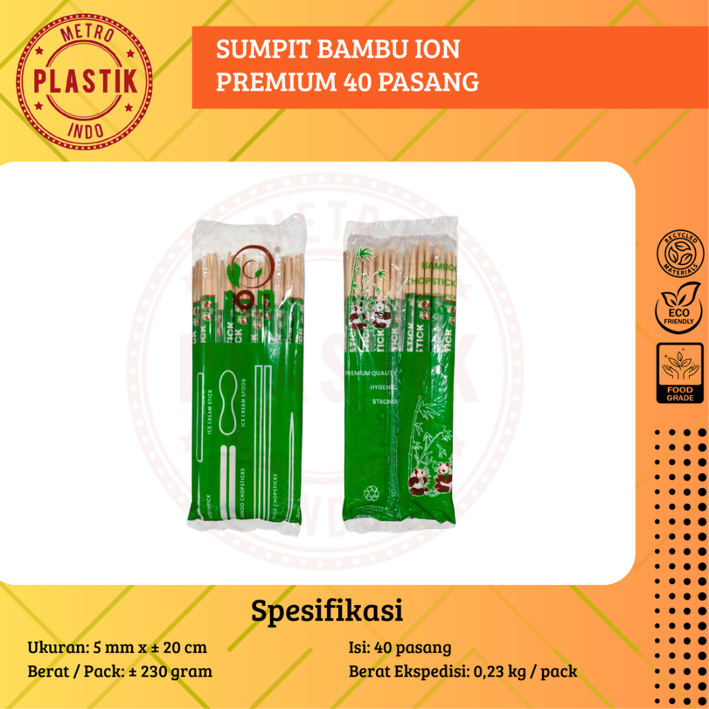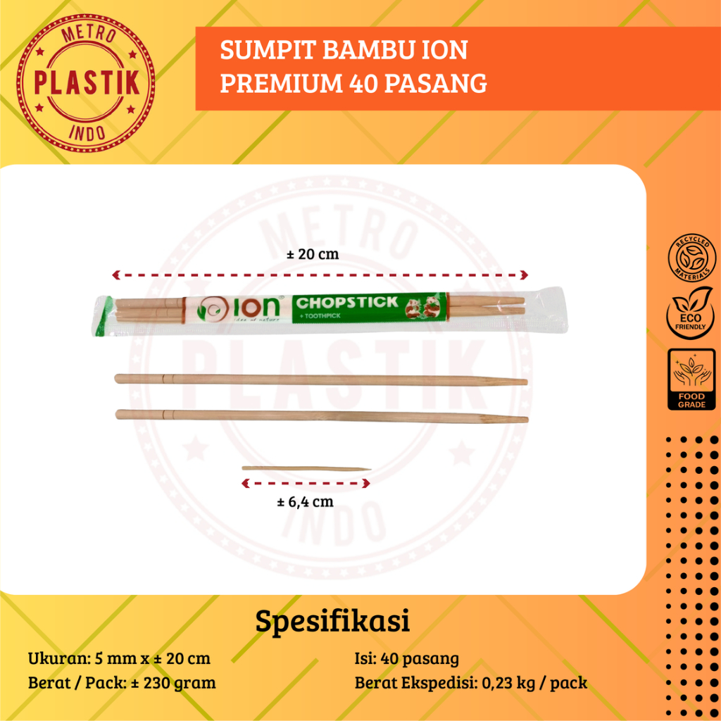 Sumpit Bambu + Tusuk Gigi Ion Steril - Sumpit Higienis Eceran - Sumpit Ion Premium dan Super Isi 40pasang dan 50pasang Food Grade