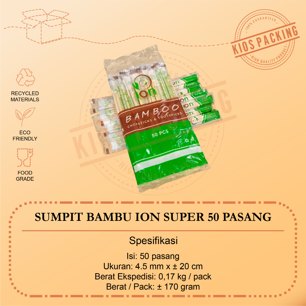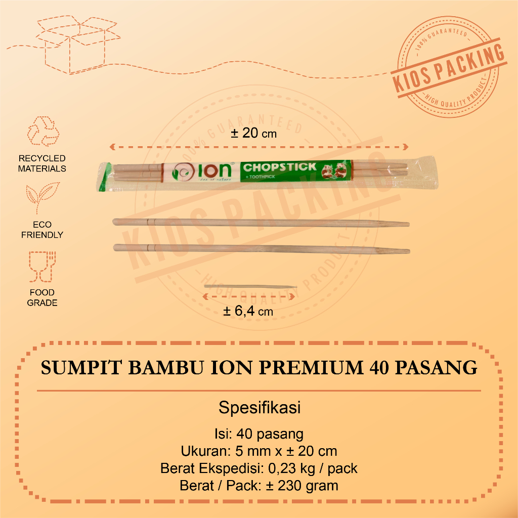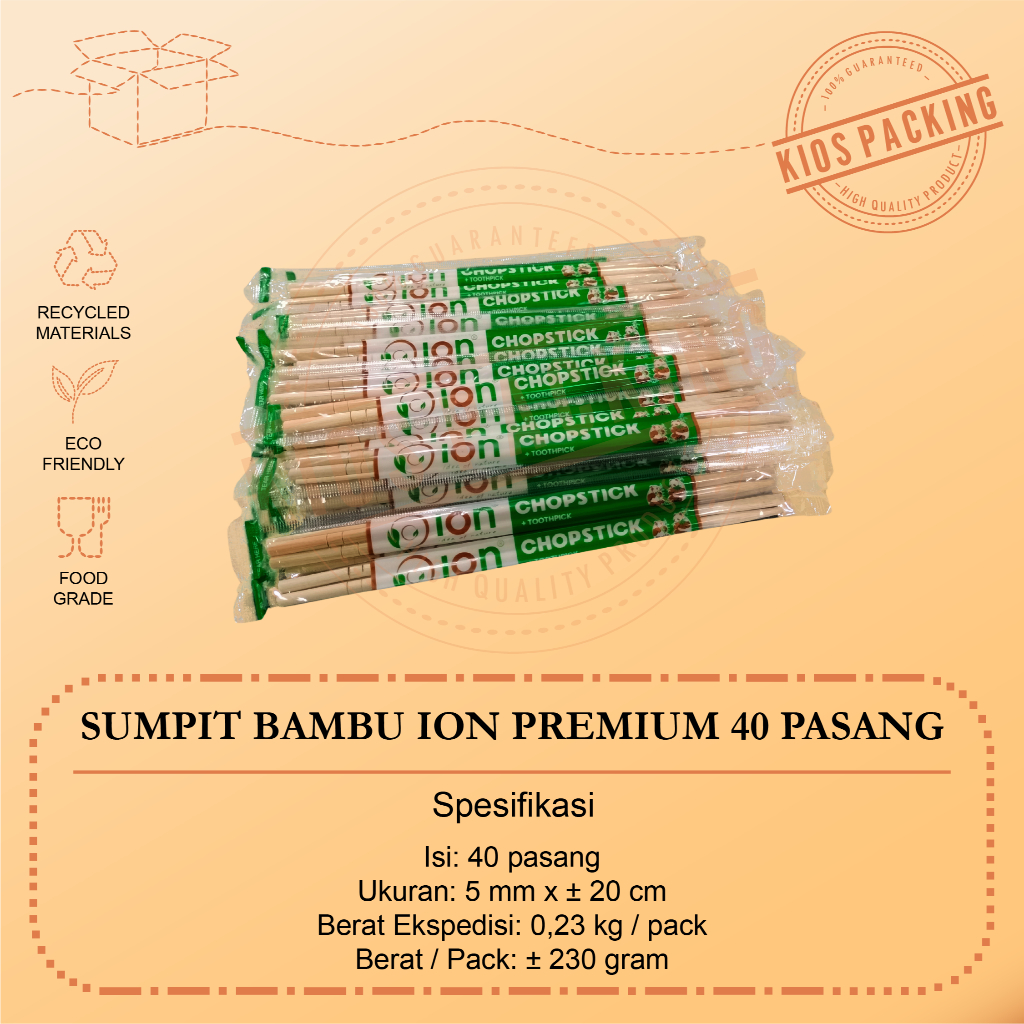 Sumpit Bambu + Tusuk Gigi Ion Steril - Sumpit Higienis Eceran - Sumpit Ion Premium dan Super Isi 40pasang dan 50pasang Food Grade