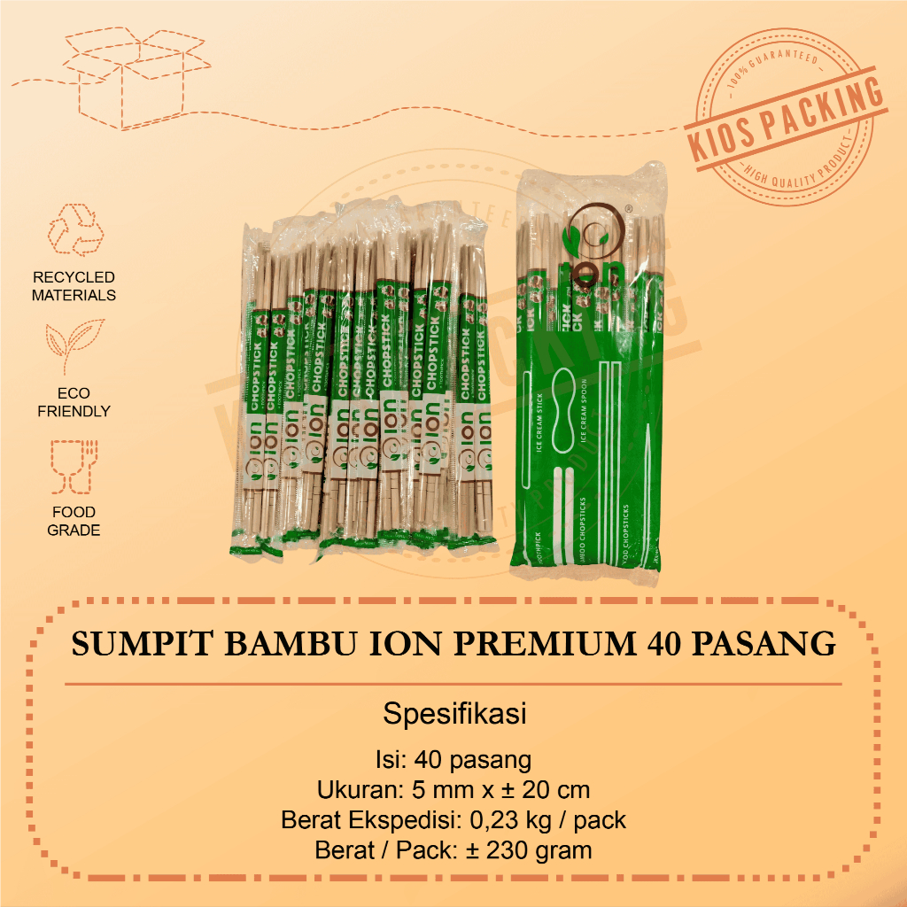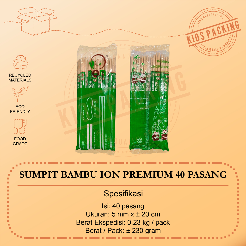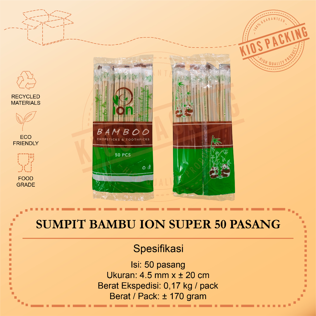 Sumpit Bambu + Tusuk Gigi Ion Steril - Sumpit Higienis Eceran - Sumpit Ion Premium dan Super Isi 40pasang dan 50pasang Food Grade