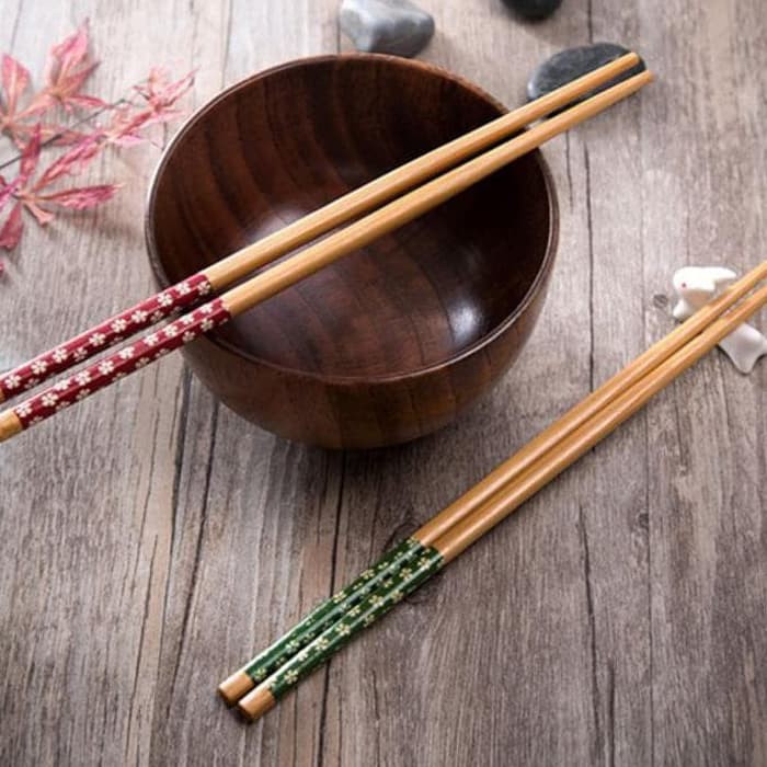 Sumpit Kayu Panjang Motif Bunga Sumpit Makan Elegan Bahan Kayu Sumpit Kayu Cherry Blossom Murah