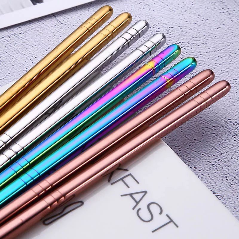 Sumpit Stainless Bentuk KOTAK AGAK BULAT Chopstick Sumpit Korea Jepang China Alat Makan Korean #3