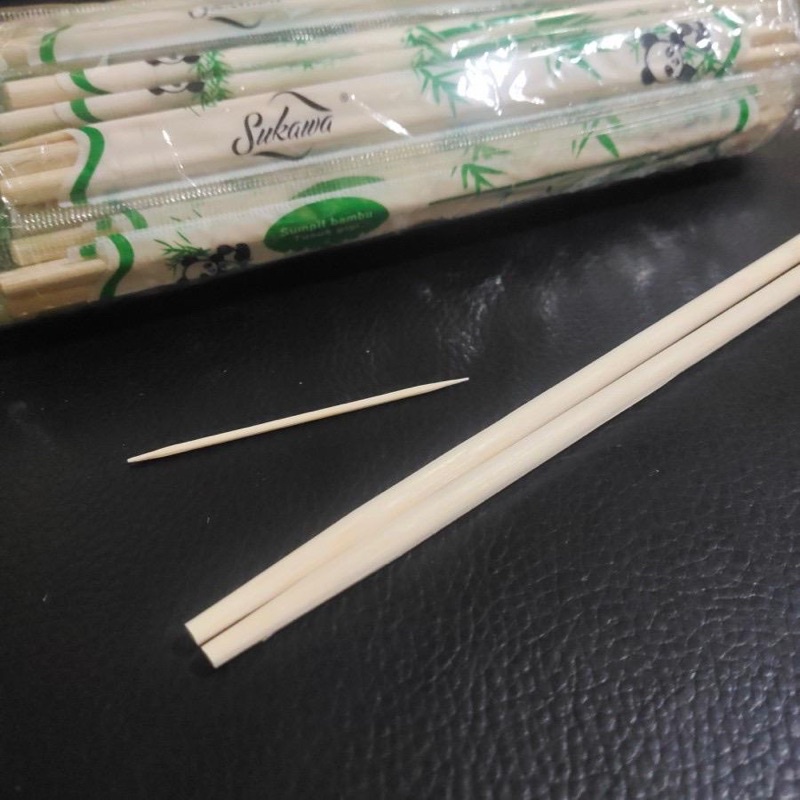 Sumpit bambu 50 pasang+tusuk gigi / sumpit bambu steril higines bungkus plastik/sumpit sukawa -sumpit panda