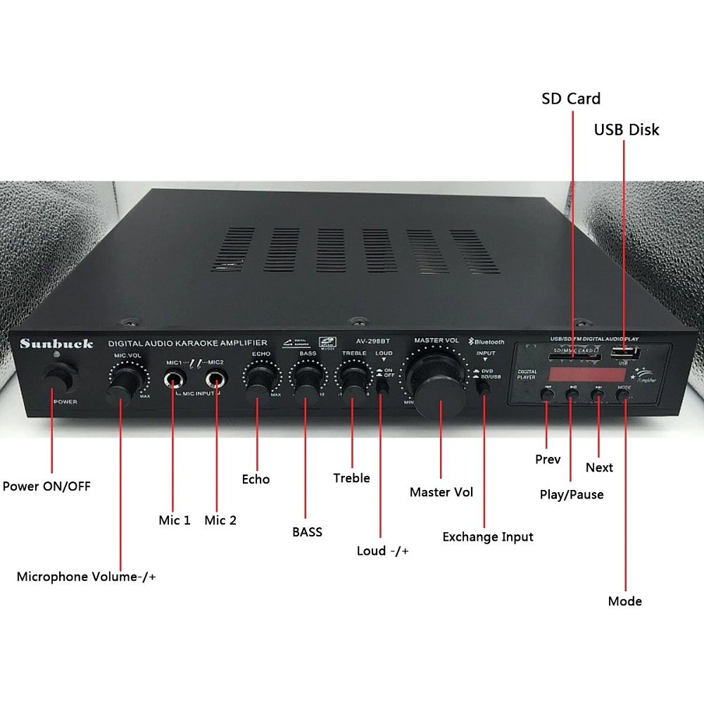 Sunbuck Audio Amplifier Bluetooth DAC Home Stereo 5 Channel - DAC Home Stereo Amplifier - AV-298BT dan AV-298BO
