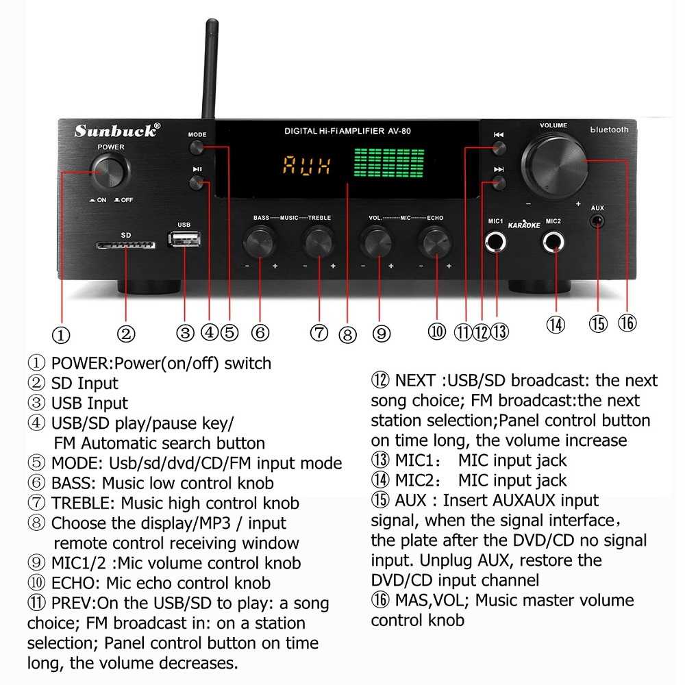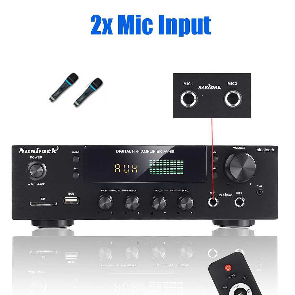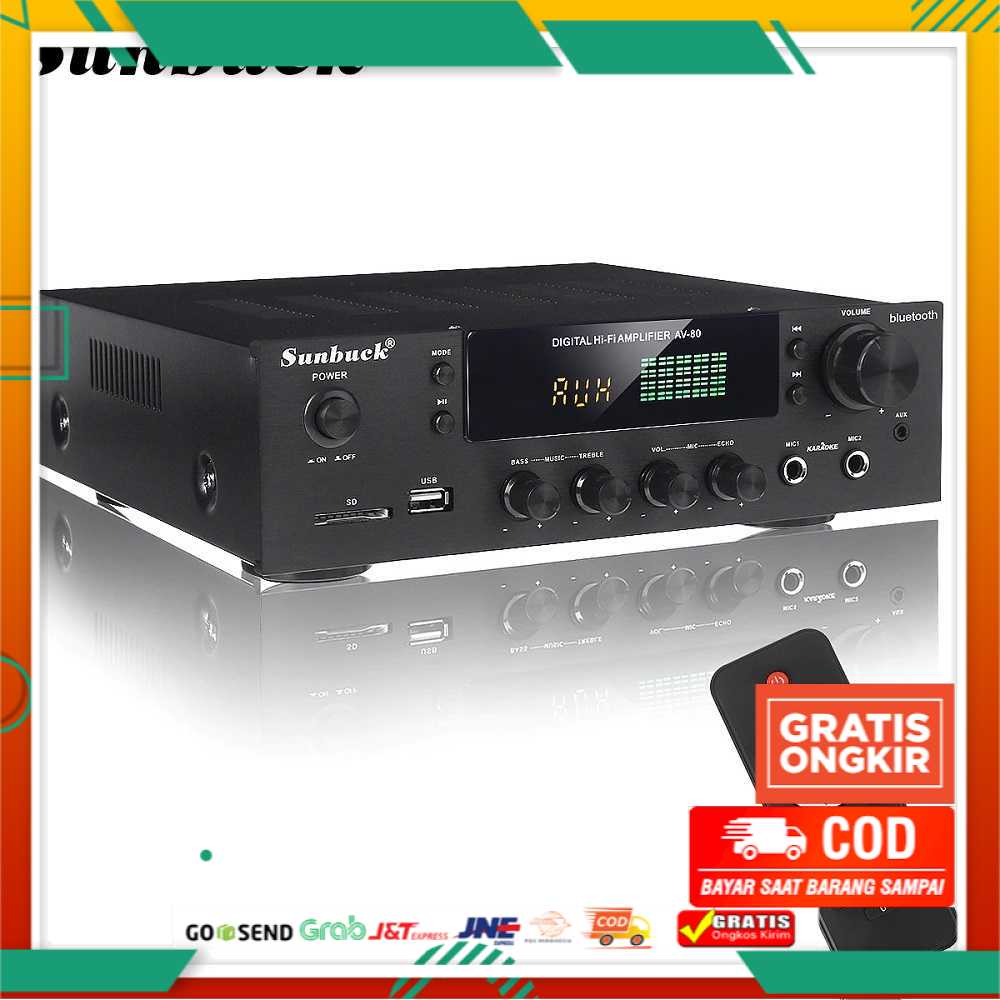 Sunbuck Power Amplifier Ampli 2000W Watt Bluetooth Karaoke Home Theater Mp3 USB FM Radio Sunbuck Bluetooth Power Amplifier AV-80 Murah