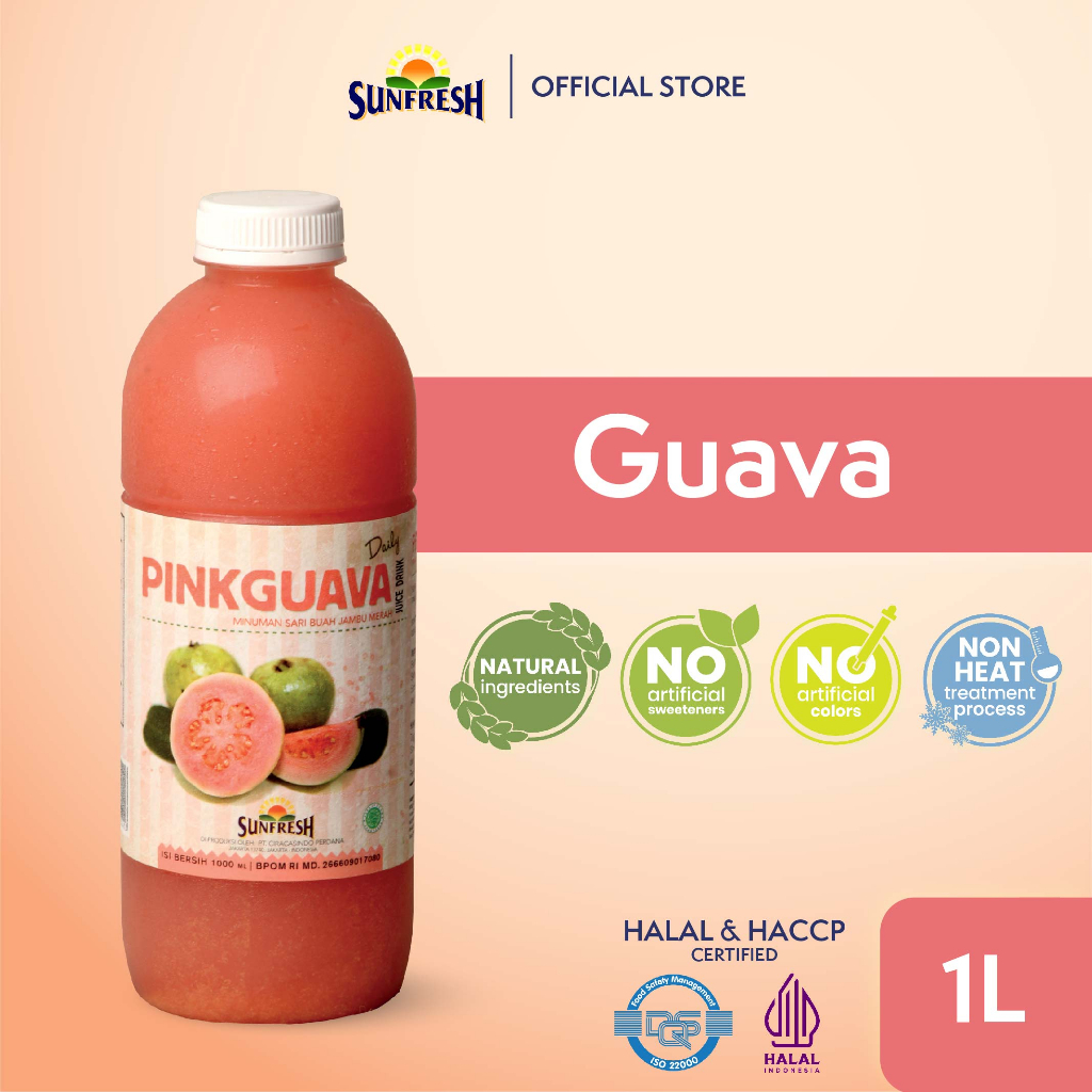 Sunfresh Daily Pink Guava Juice 1 Liter Mengandung Vitamin C & A - Jus Buah Jambu Merah Asli