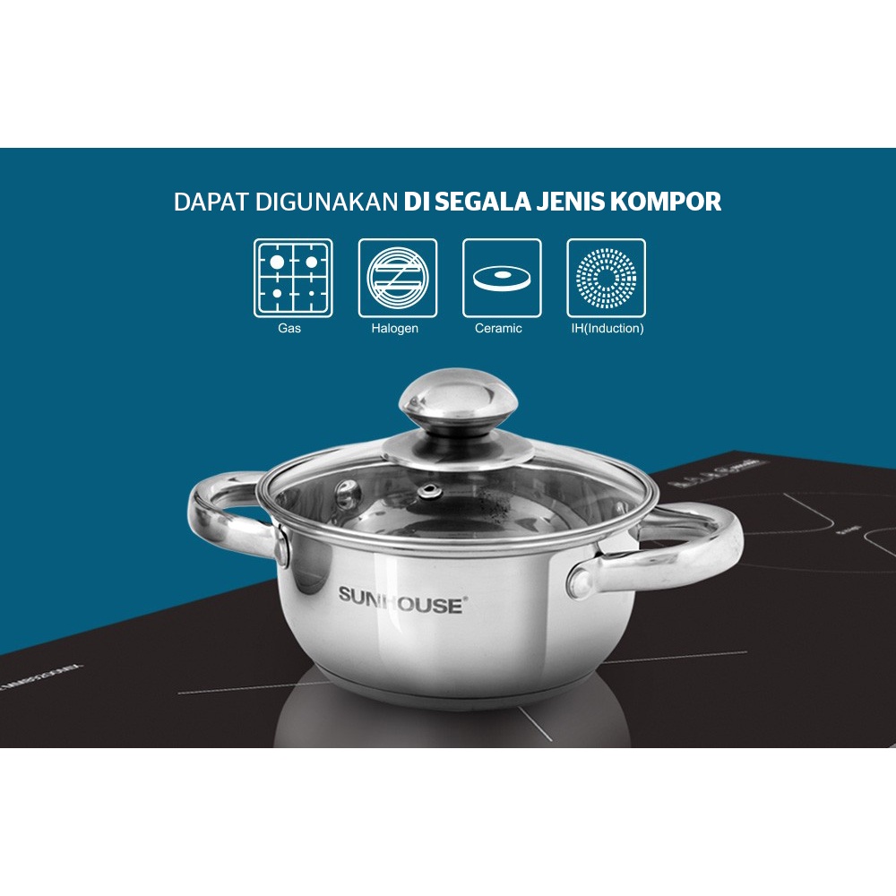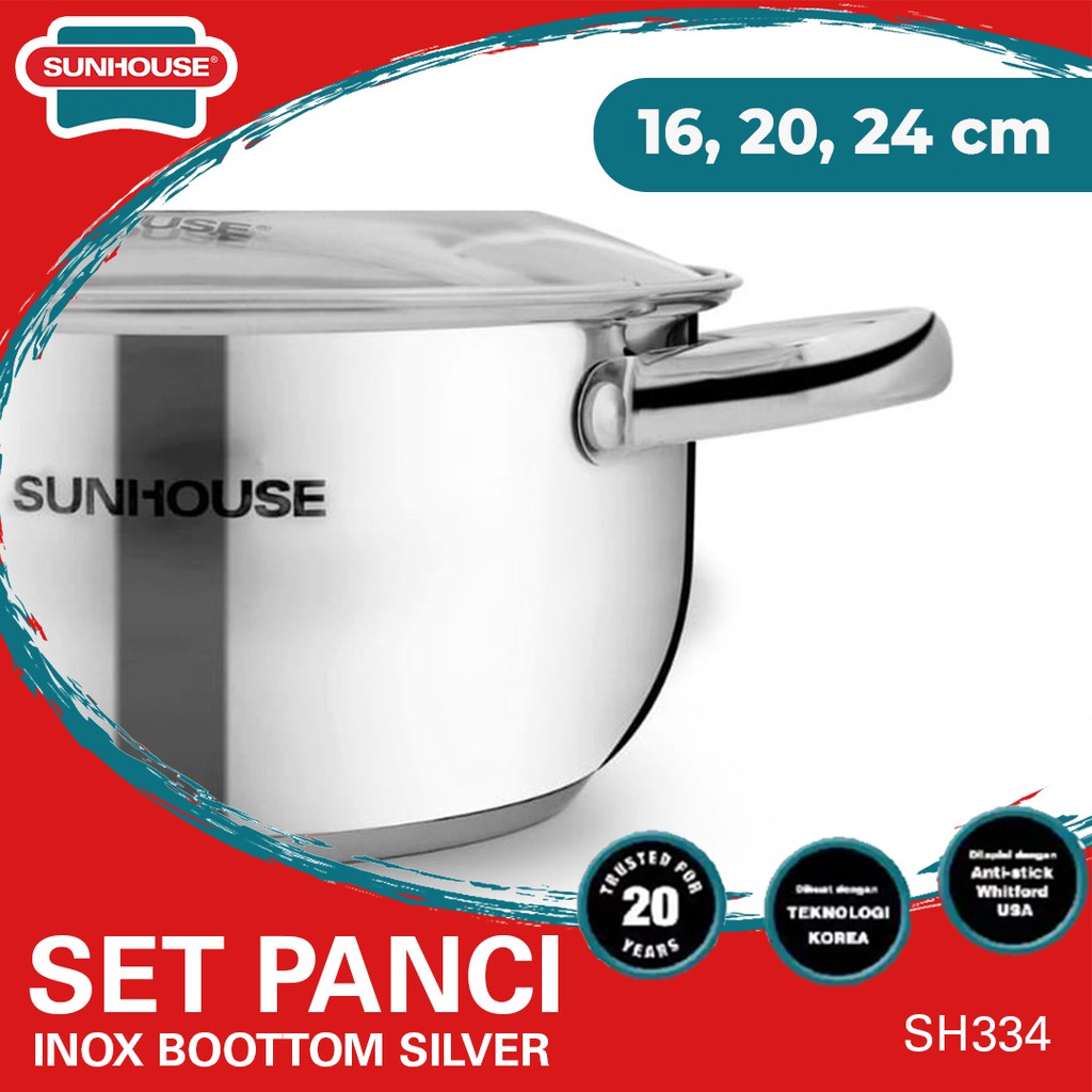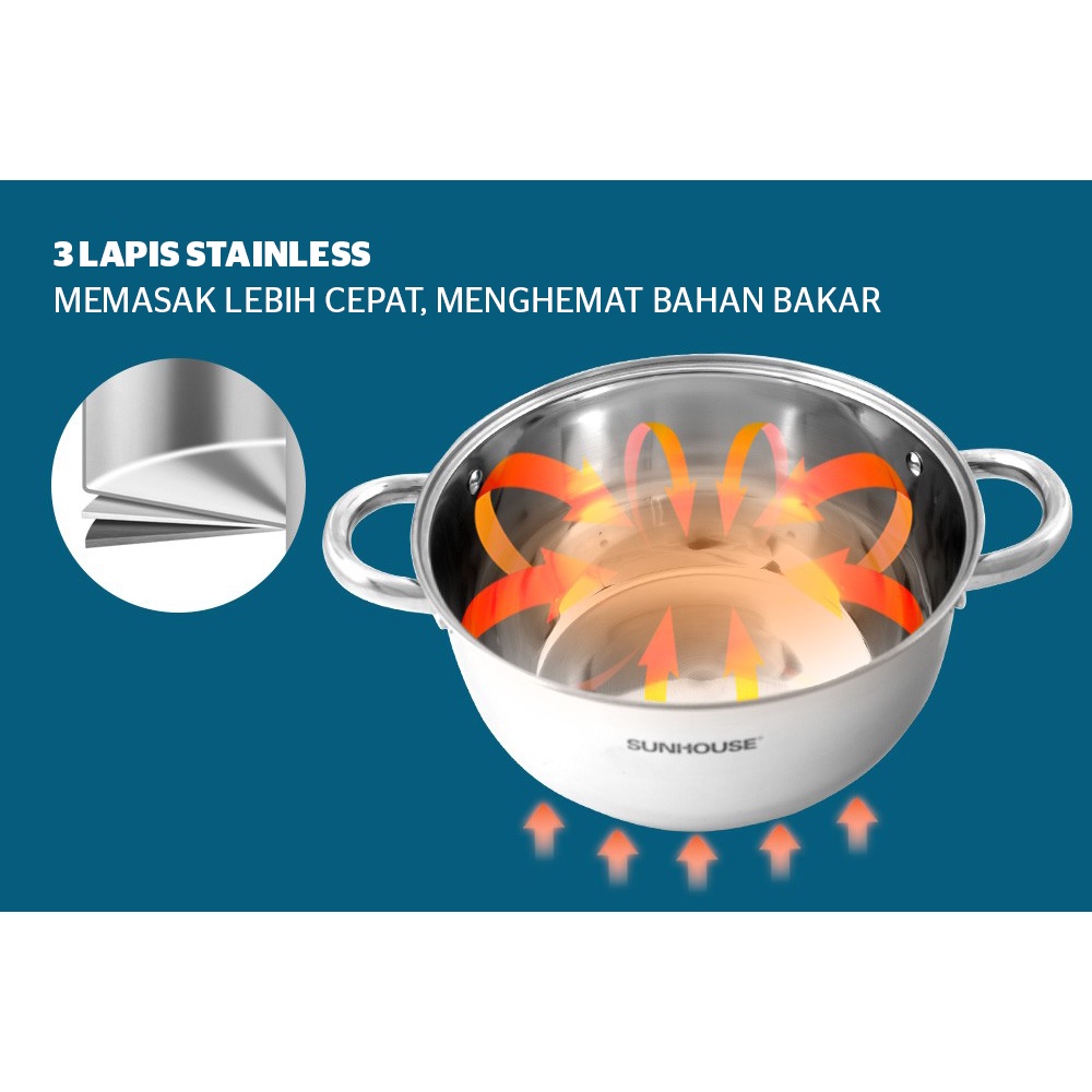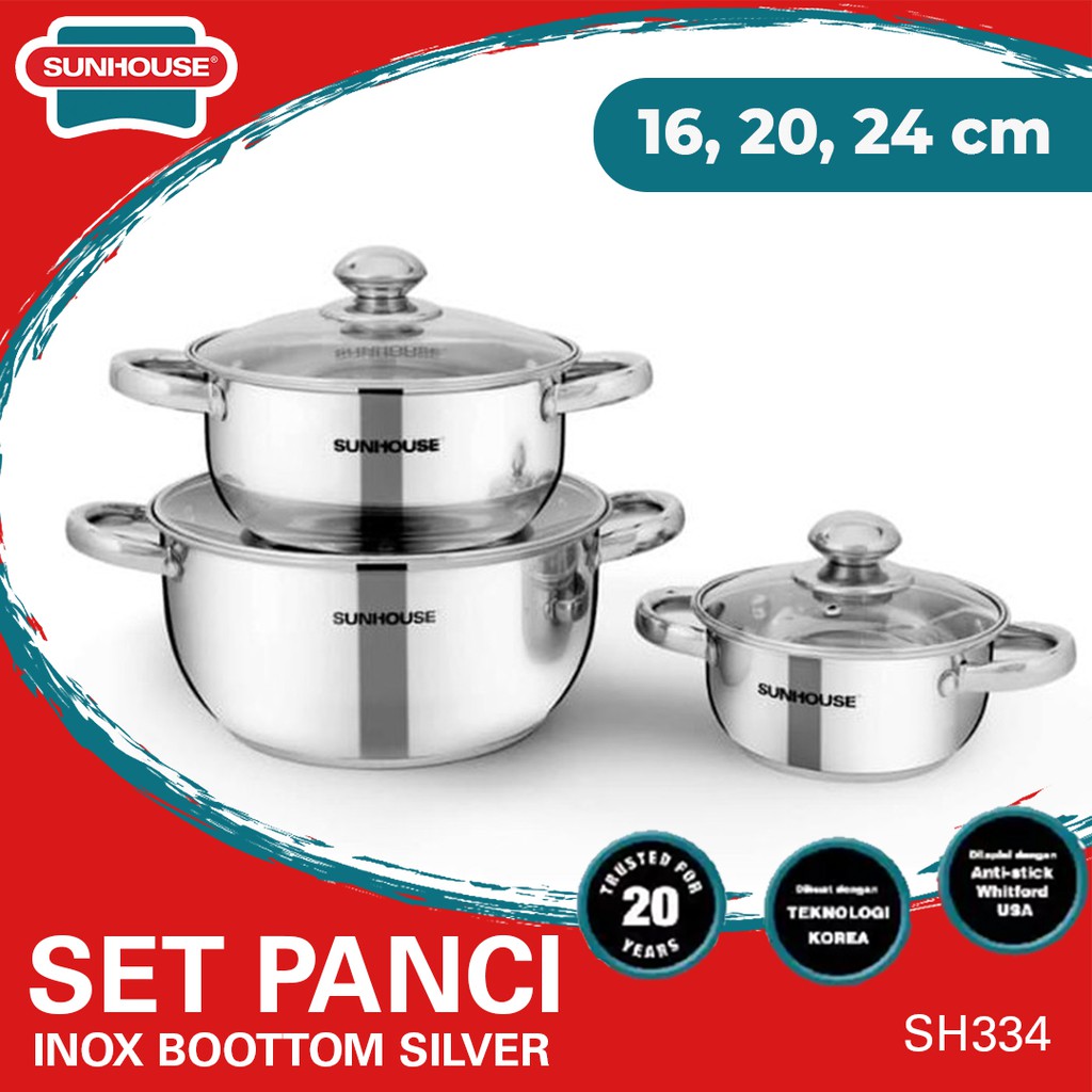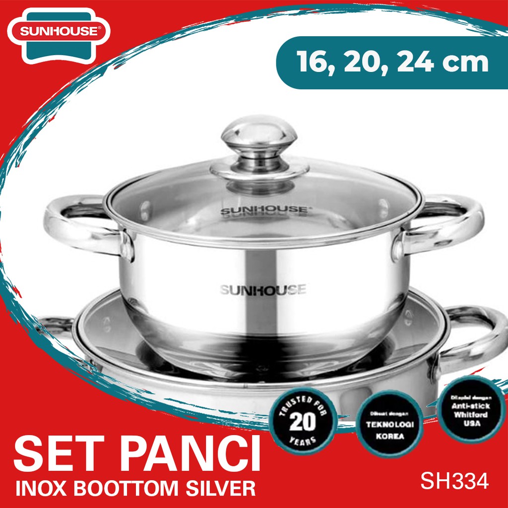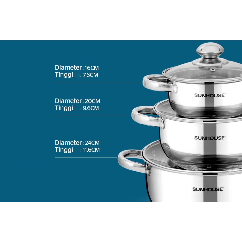 Sunhouse SH334 Set Panci Inox Bottom Silver 16, 20, 24 cm 1 Set