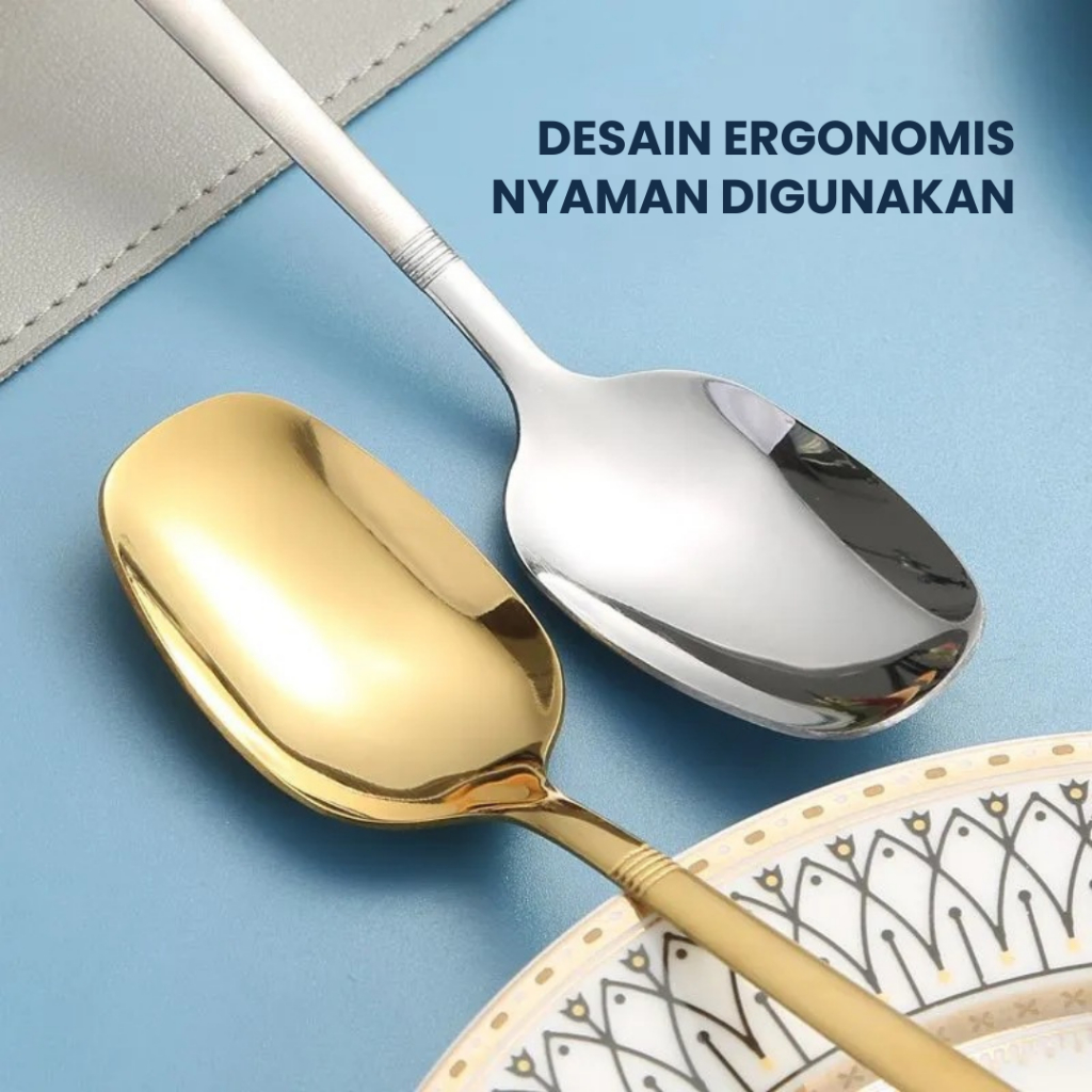 Sunland Sendok Kotak Gold Silver Stainless Steel Square Sendok Peralatan Makan Sendok Makan Tebal