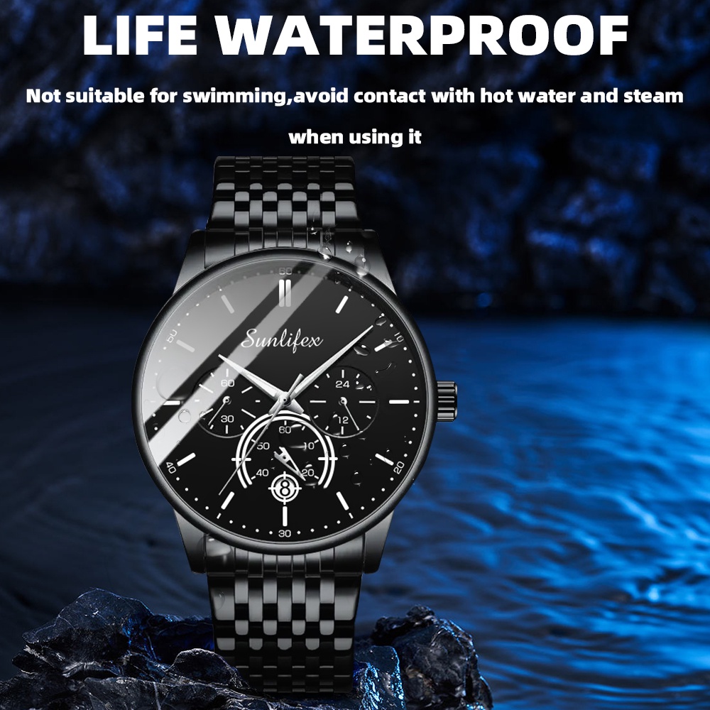 Sunlifex Jam Tangan Pria Original Bisnis Anti Air Kuarsa Jam Pria Calendar Tali Stainless Steel Jam Tangan Cowok 9007