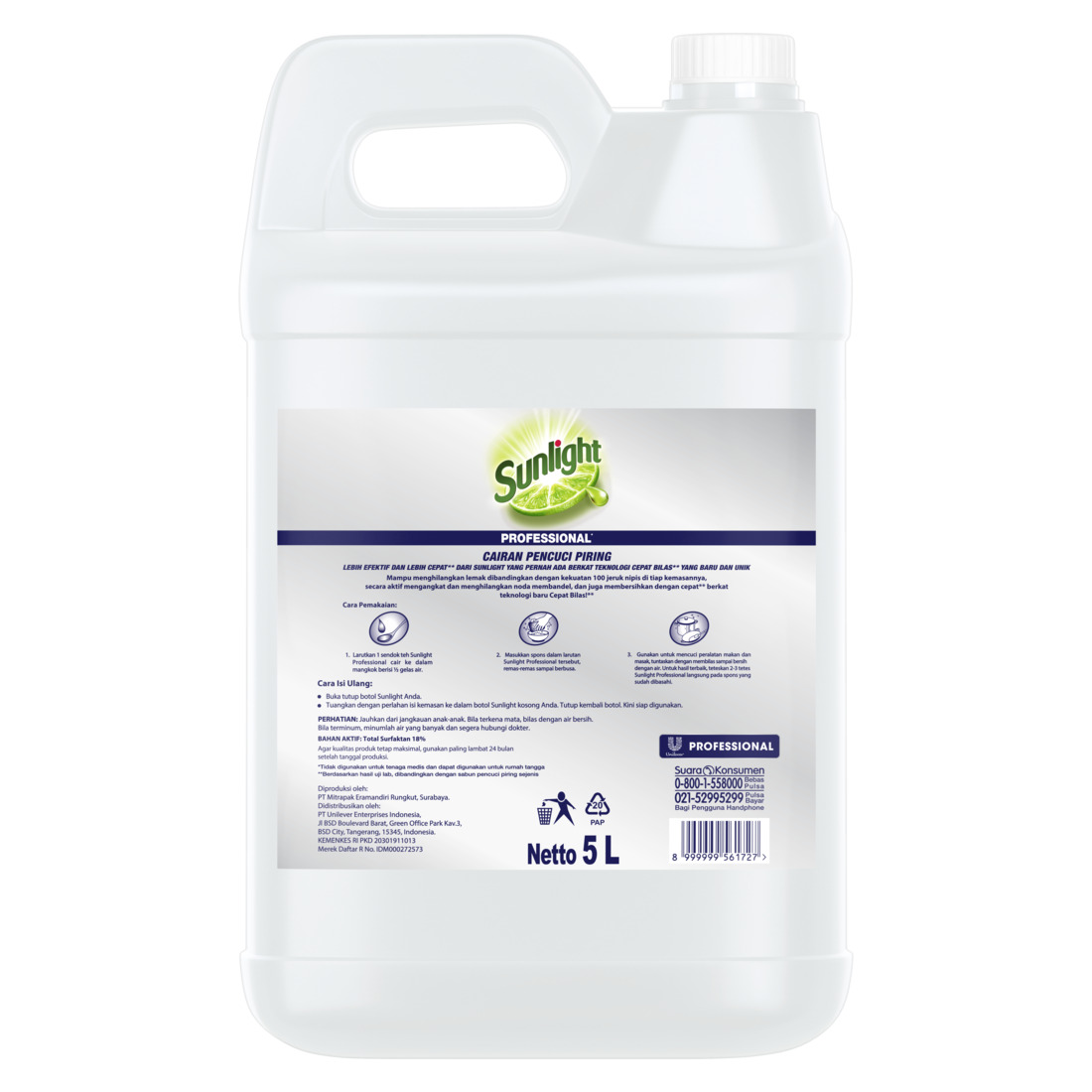 Sunlight Professional Sabun Cuci Piring Cair Jeruk Nipis 5 L Jerigen Untuk Horeka