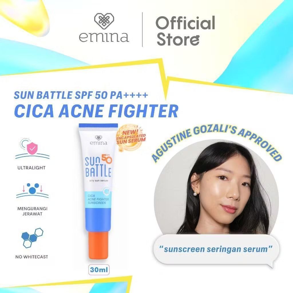 Sunscreen Emina Sun Battle Spf 50 Pa++++ Barrier Hydraburst Cica Acne Fighter Sunscreen 30ml