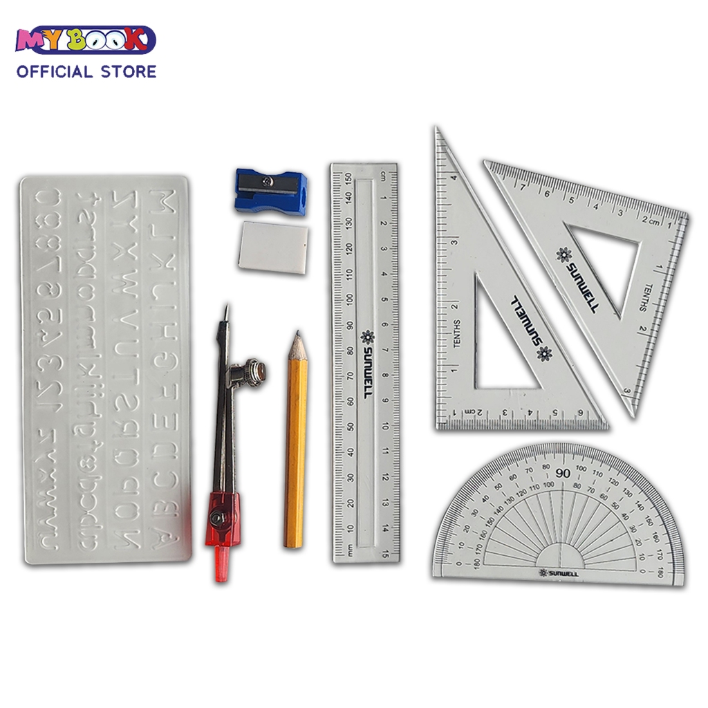 Sunwell Math Drawing Set - Instrument Set Jangka Busur Penggaris Matematika
