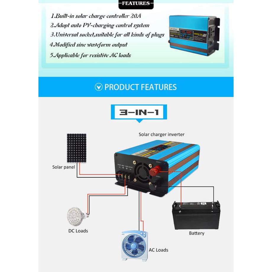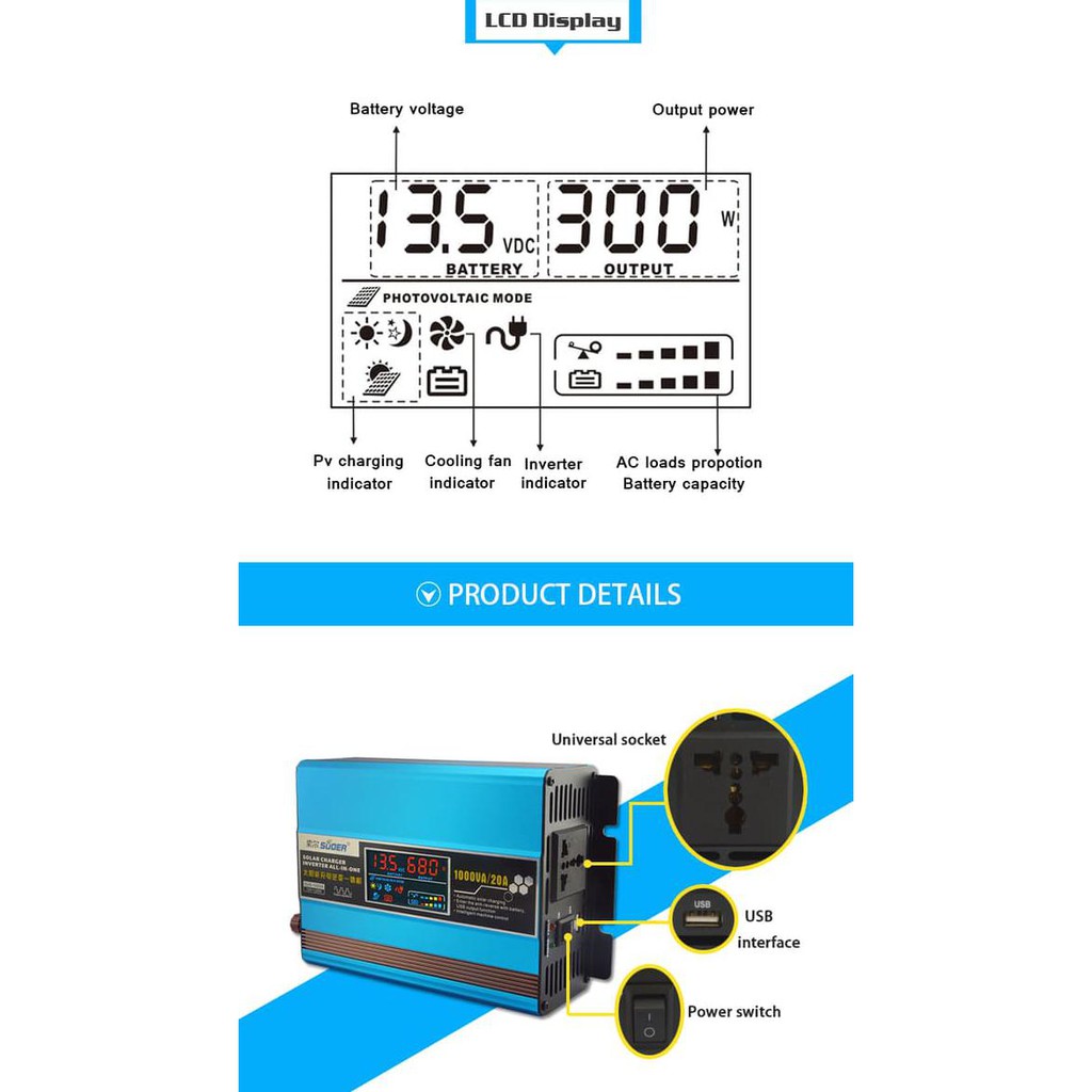 Suoer Solar Inverter 1000W 1000Va 12V 220V Charger + Controller Murah