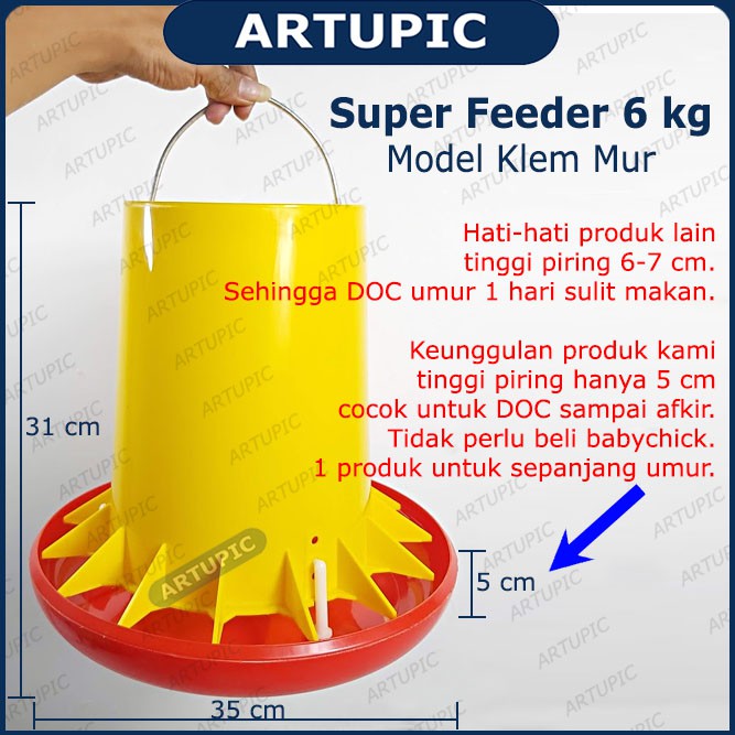 Super Feeder 6 Kg Klem Mur KELIPATAN 40 Tempat Makan Ayam Pedaging Broiler 6kg Artupic KELIPATAN 40