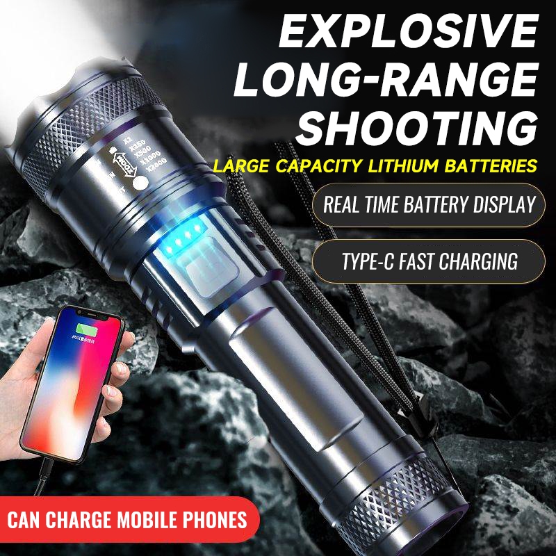 Super LED Senter Zoom Rechargeable Senter 10000 Lumens Jarak Jauh Ringan Tahan Air IPX4 USB Swat Police Terbaik