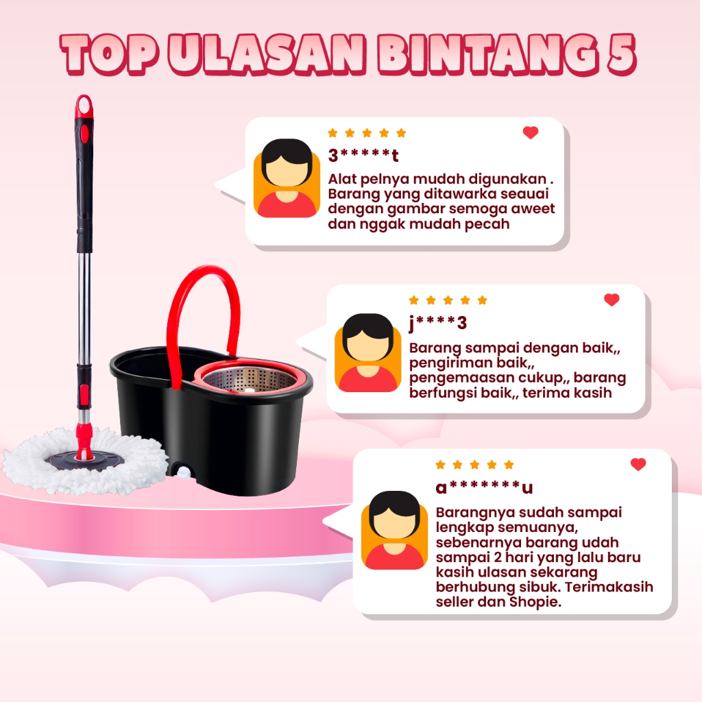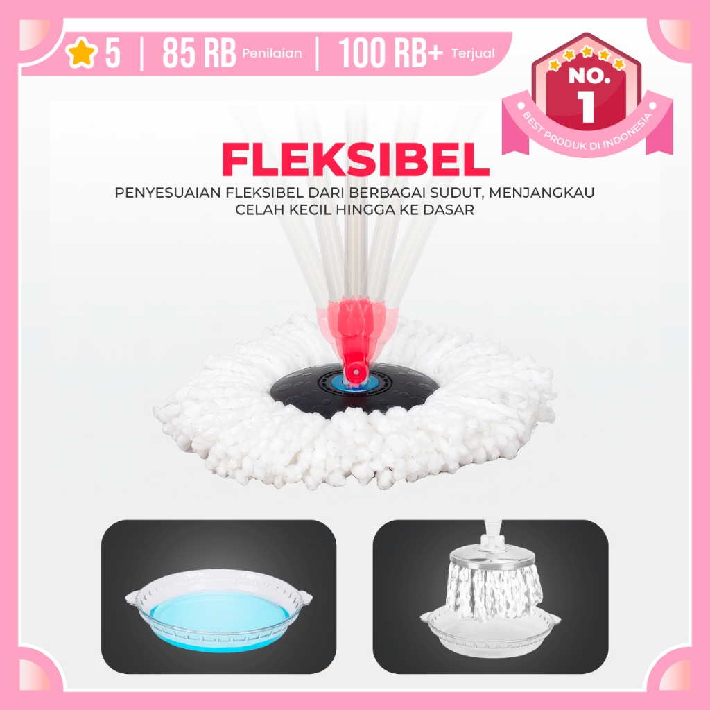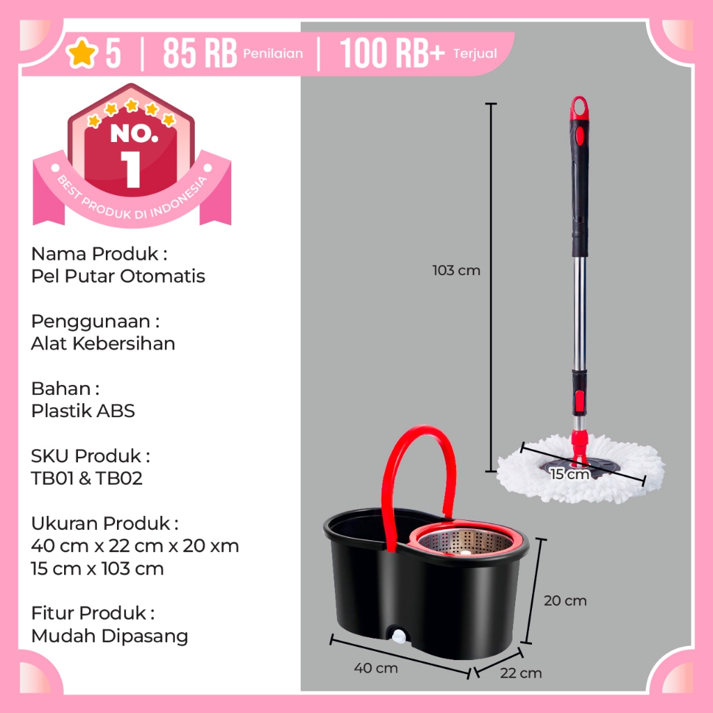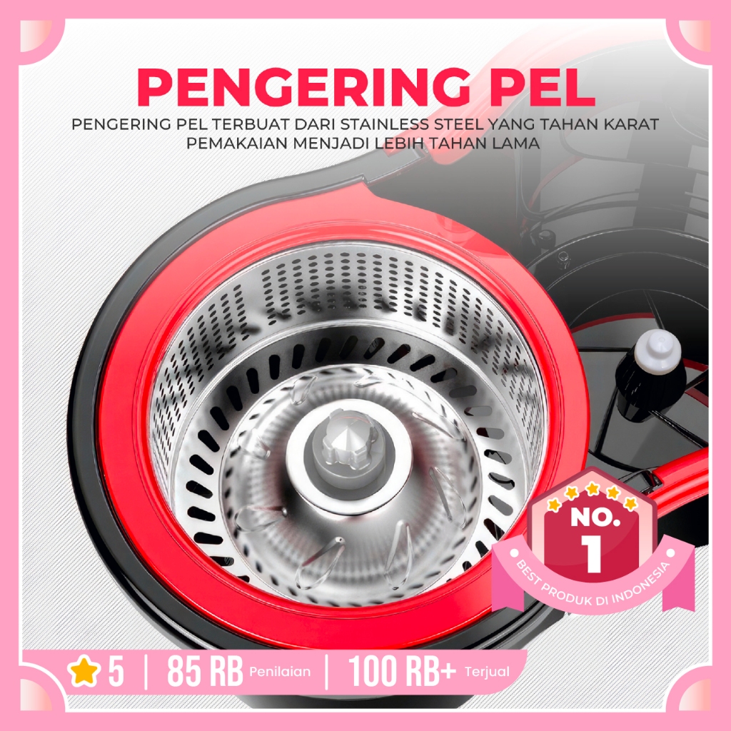 Super Mop Alat Pel Lantai TB01 Putar Alat Pel Otomatis Stainless Pel Plastik