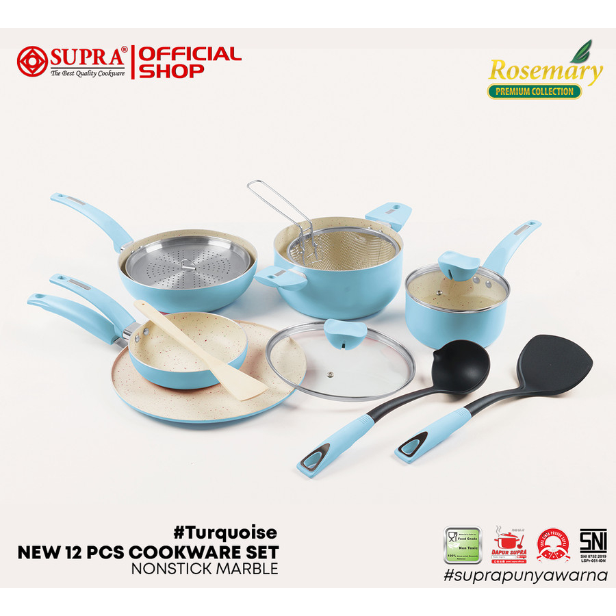 Supra 12 pcs cookware set white marble I Panci Set Supra 12 pc White Marble