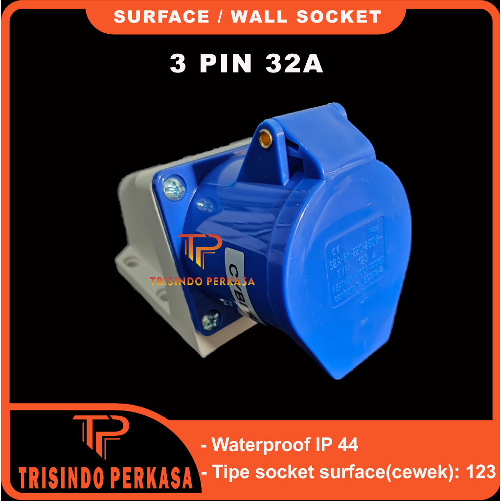 Surface Mounting Industrial Wall Socket 3P / 3 Pin 3Pin 32A 32 Ampere 123 IP44 3Kaki 3 Kaki 32a