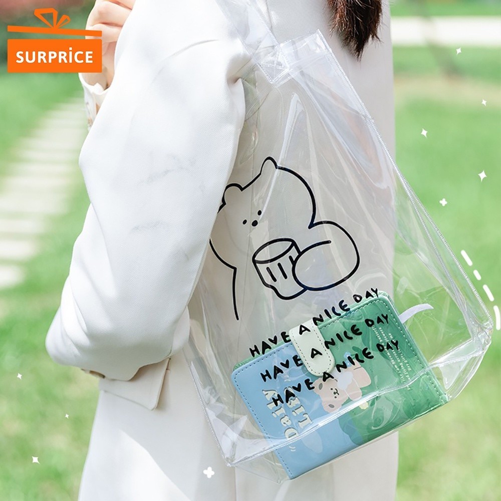 Surprice Tas Tote Bag Mika Transparan / Totebag Transparant PVC Fashion Wanita / Shoulder Bag Transparan