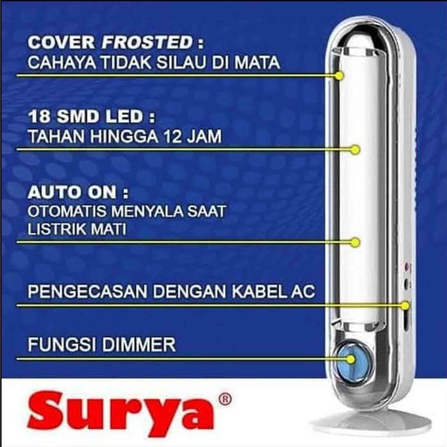 Surya Lampu Emergency SQL 18L FROSTED Light LED 18 SMD With Dimmer Switch Rechargeable FREE Kabel
