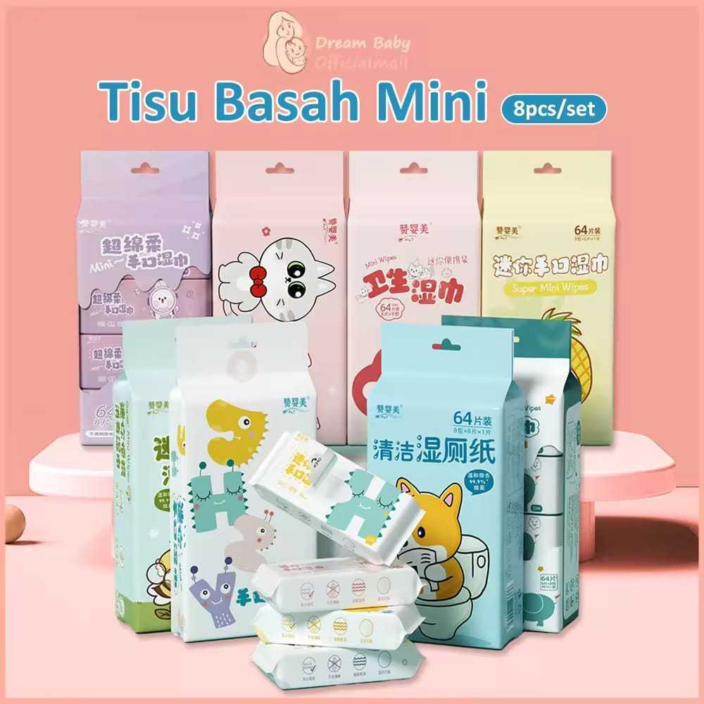 SuryaMart TISSU BASAH TRAVEL MINI (1Pack Isi 8) Tissue Basah Mini/Tissue Basah Travel/Tisu Non Alcohol